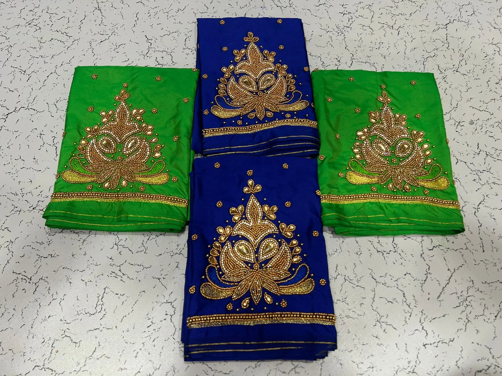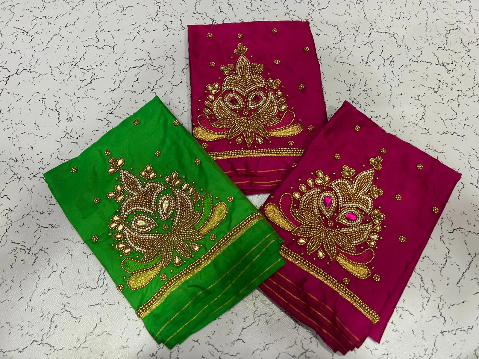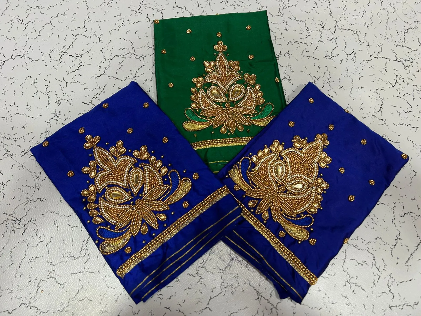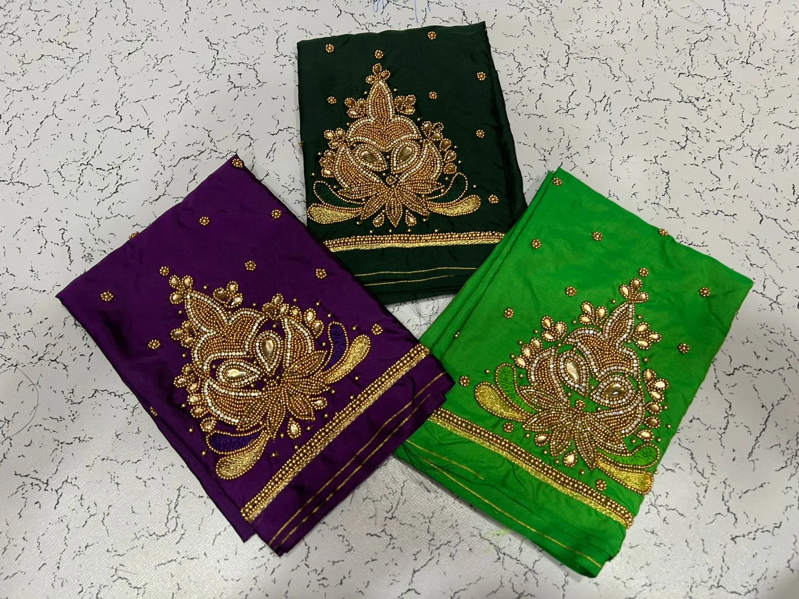 A: We use high-quality fabric to ensure comfort and durability. The intricate aariwork adds a luxurious touch, making it perfect for special occasions.