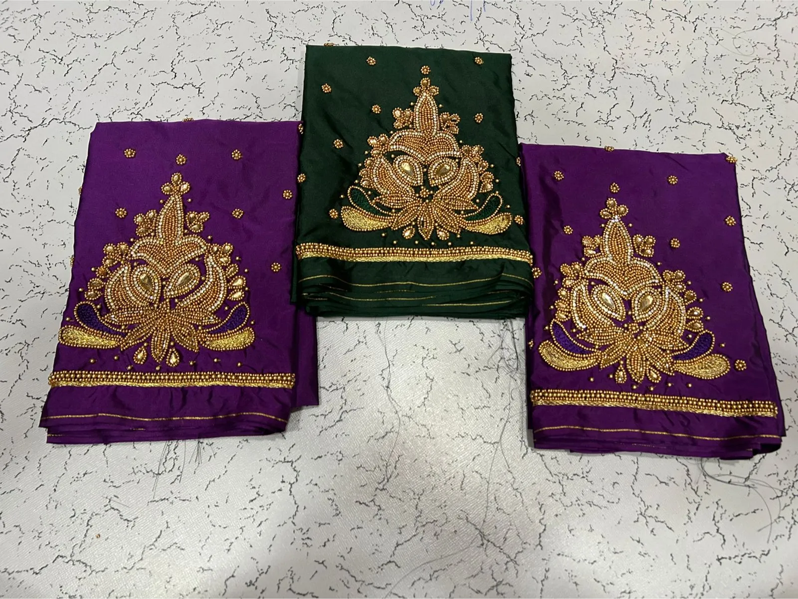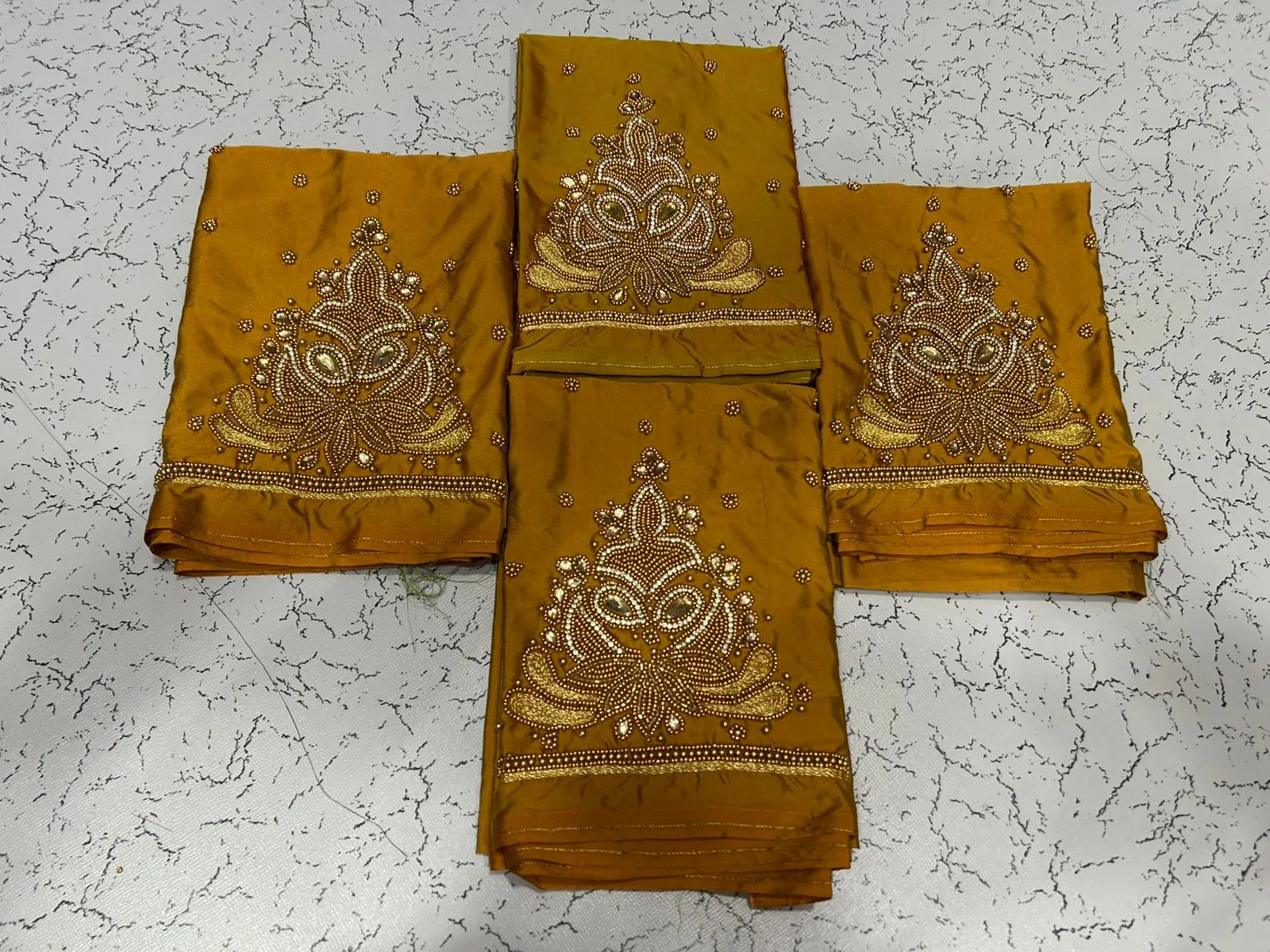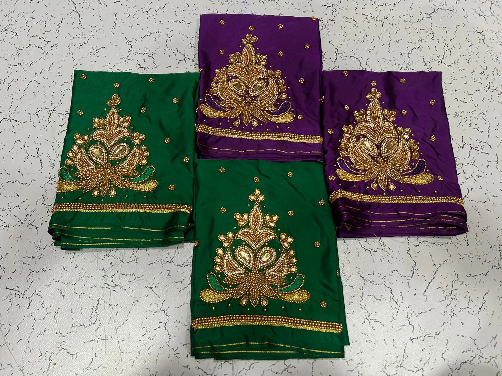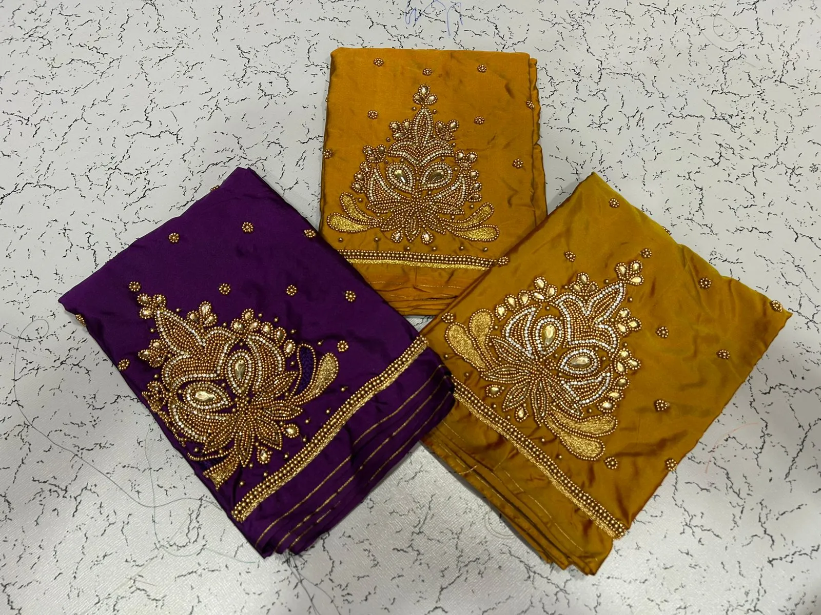 A: We use high-quality fabric to ensure comfort and durability. The intricate aariwork adds a luxurious touch, making it perfect for special occasions.