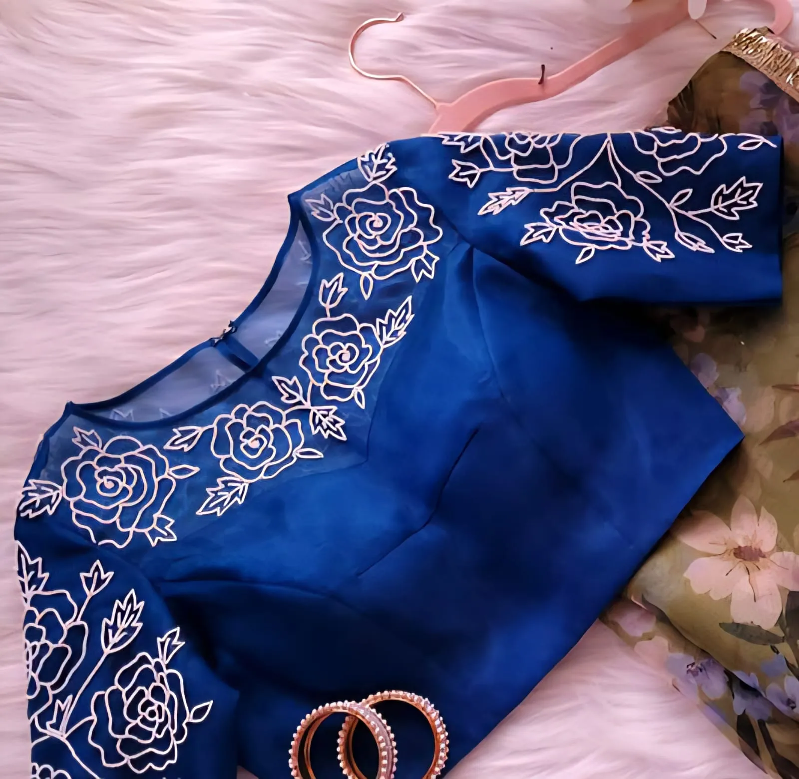 Glamour Unleashed: All-Over Pearl Embellished Blue Blouse