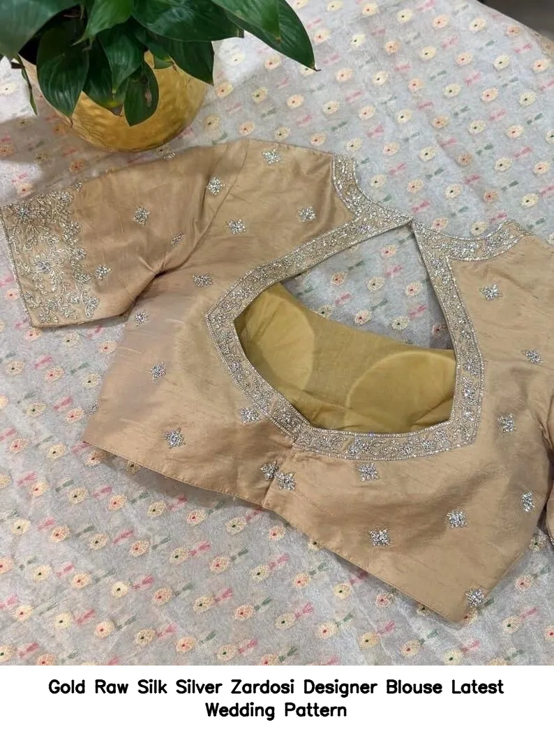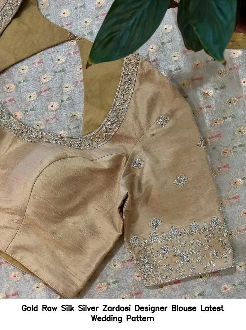 Why Choose Gold Raw Silk Silver Zardosi Designer Blouse – Latest Wedding Pattern?
