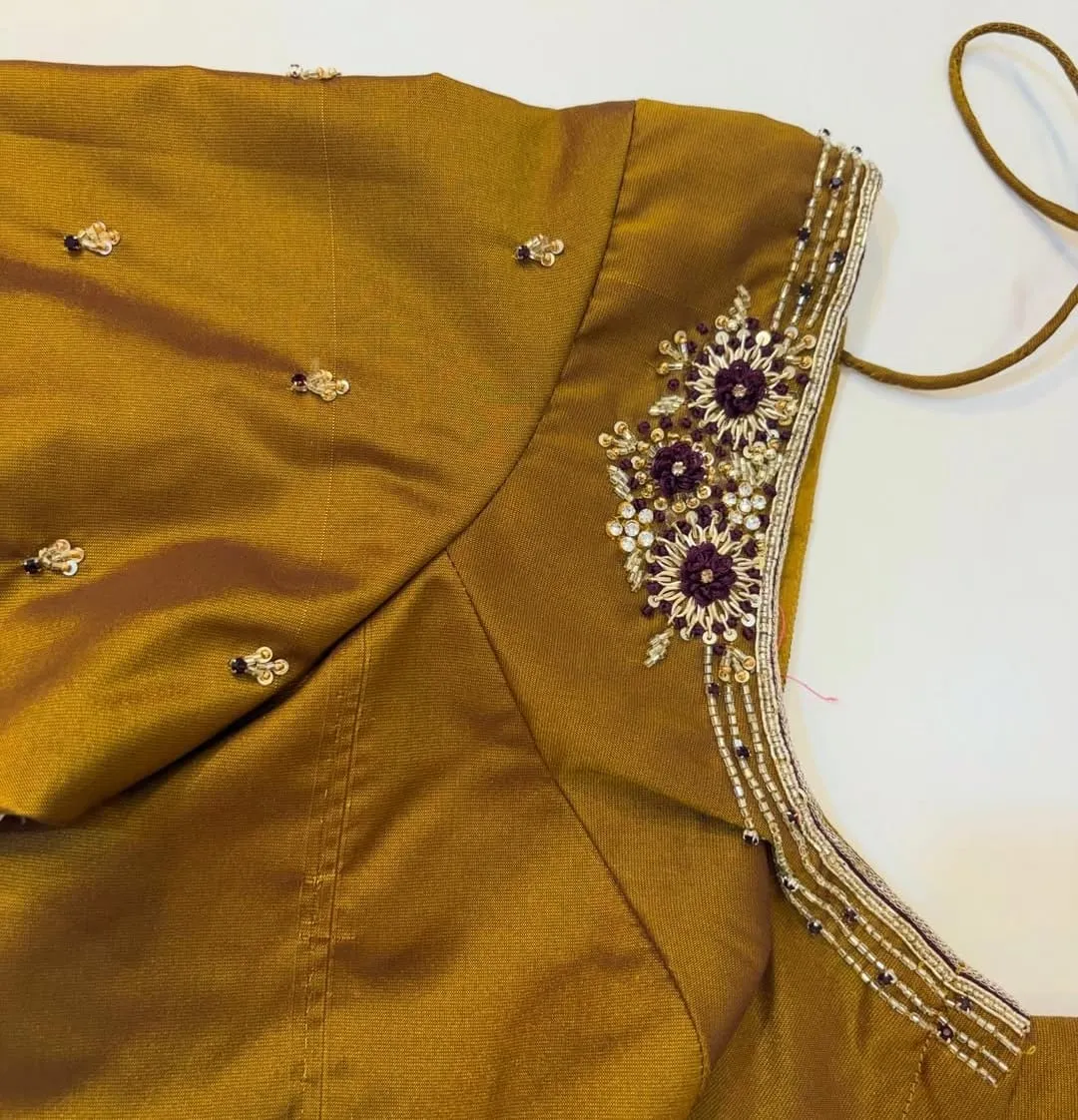 Why Choose Gold Zardosi Maggam Work Blouse Simple Design Best Wedding Choice?