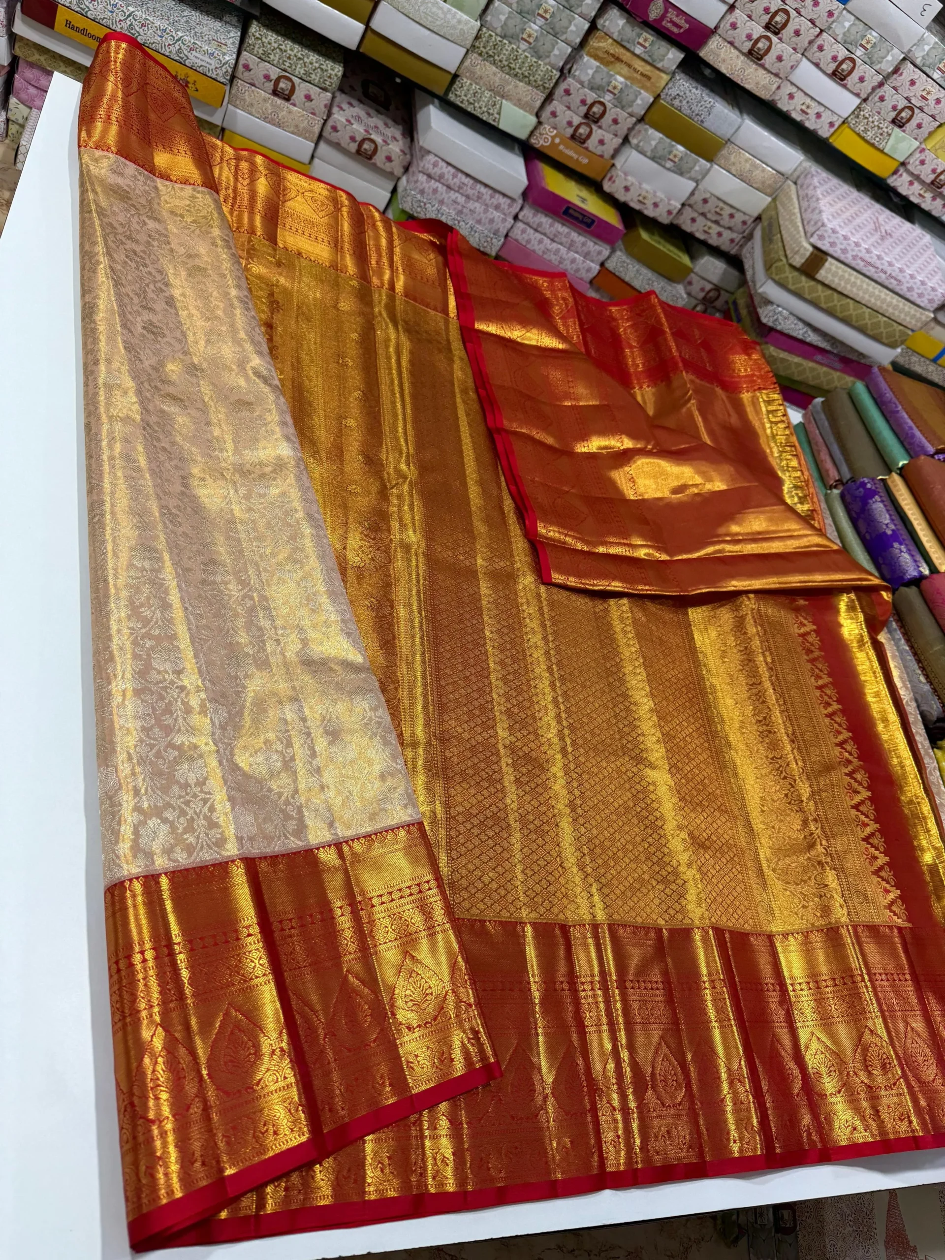 Golden Glow Pure Tissue Bridal Saree with Handloom Excellence