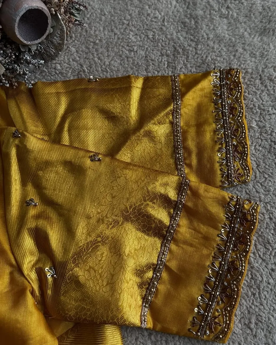 Why Choose Golden Yellow Maggam Work Blouse Design Bridal Wedding Handcrafted Aari Zardosi Blouse?