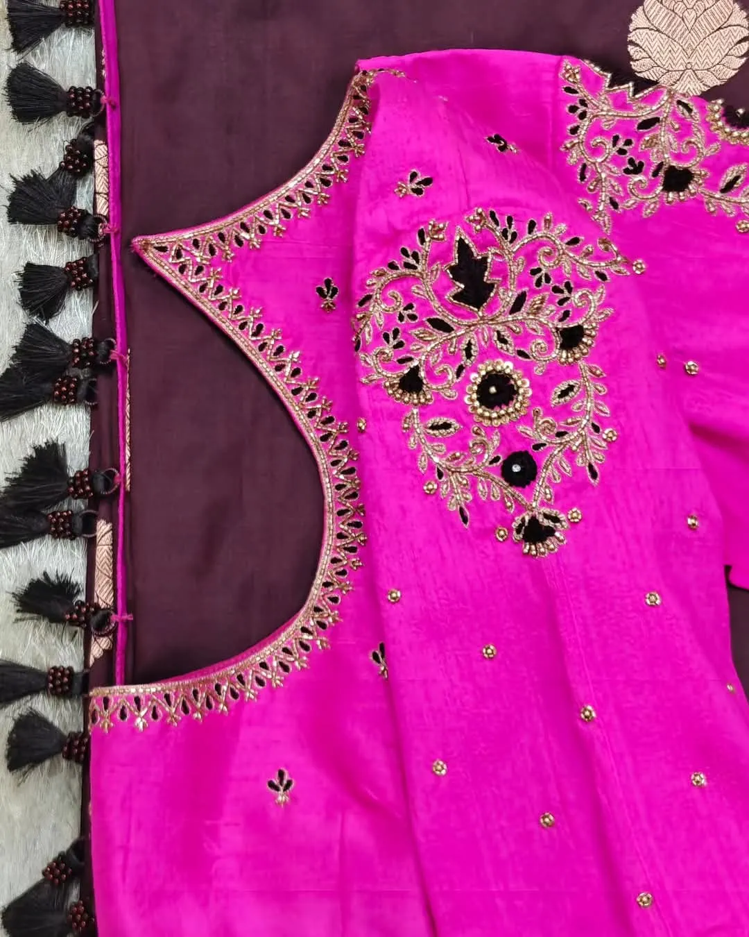 Gorgeous Rani Pink Raw Silk Blouse – Dazzling Maggam Work for Party Glam