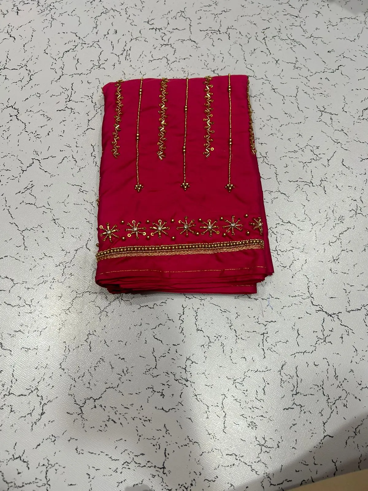 - Expertly crafted with intricate Aari work for a unique touch.