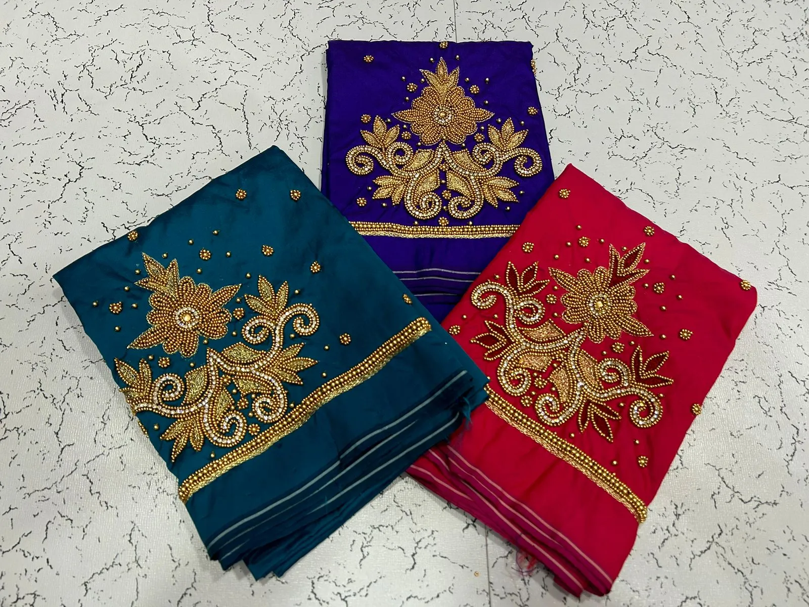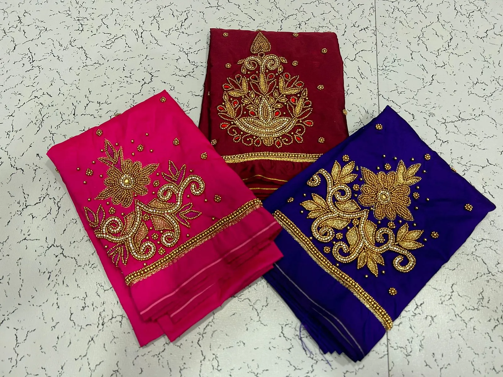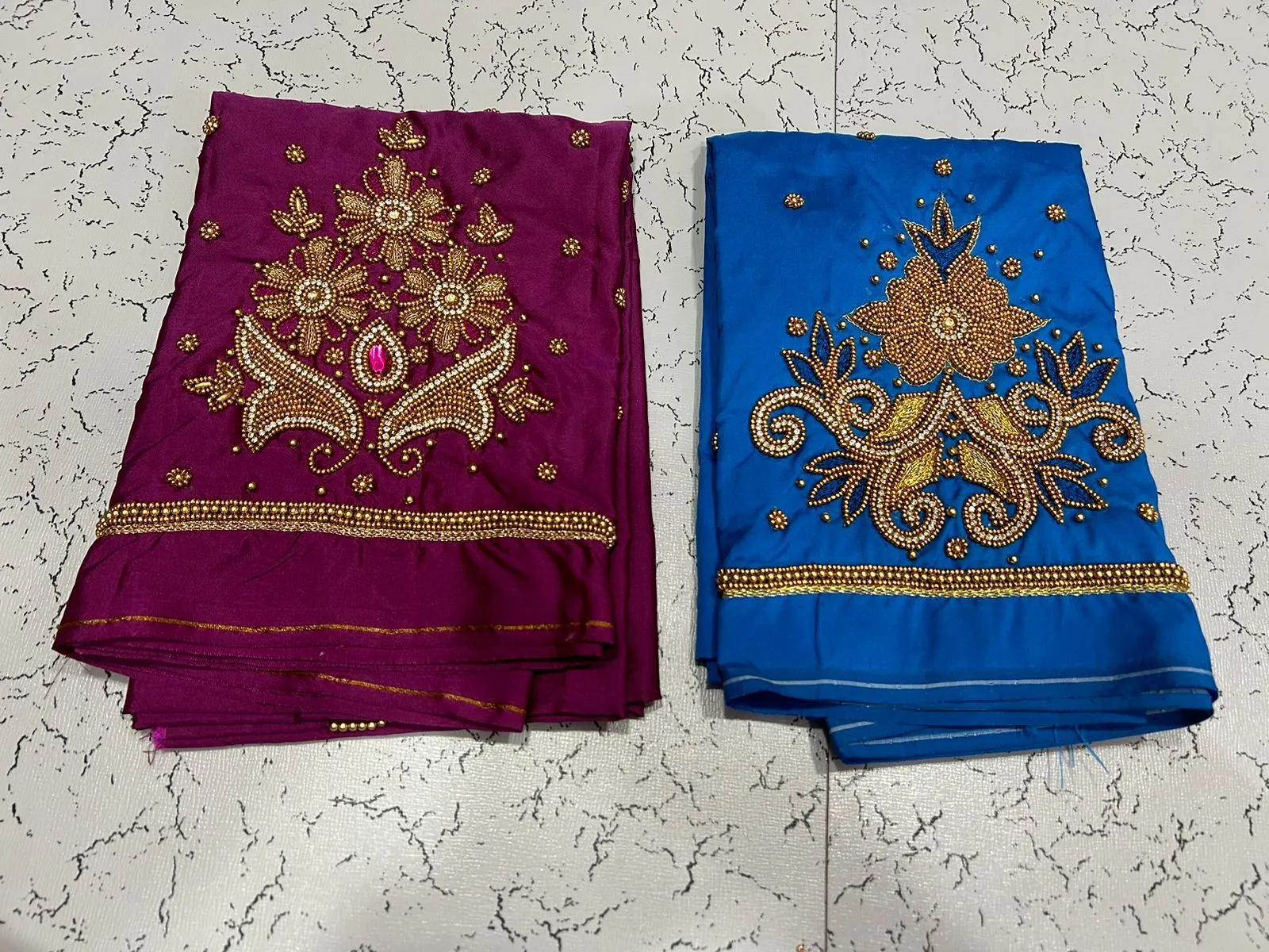 A: The blouse features high-quality fabric that is soft and durable. It ensures comfort while maintaining its vibrant colors and intricate Aariwork design.