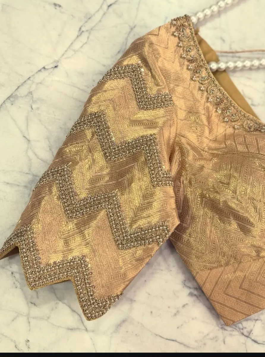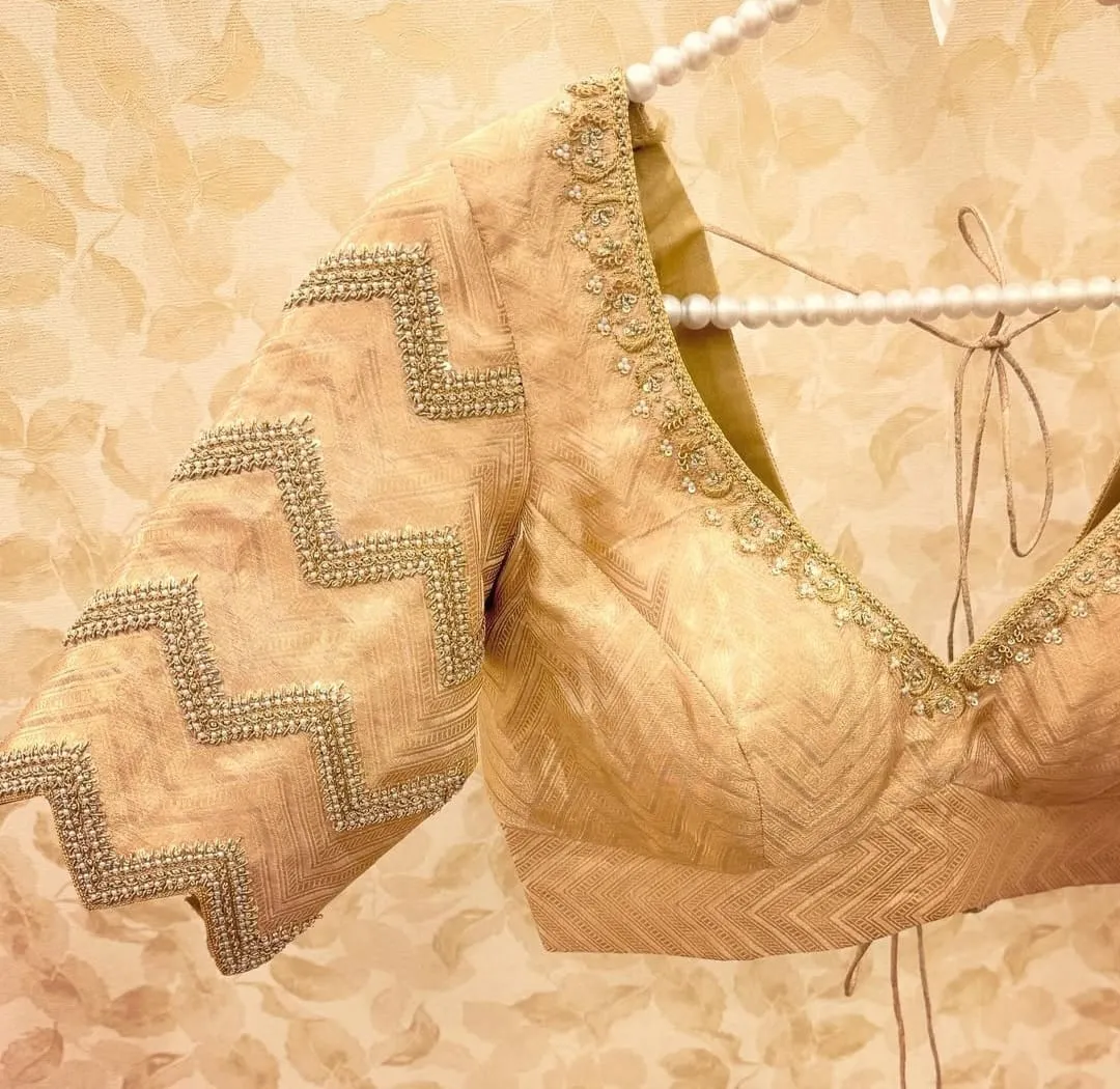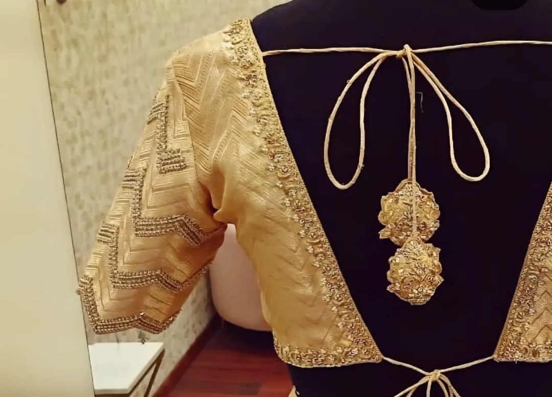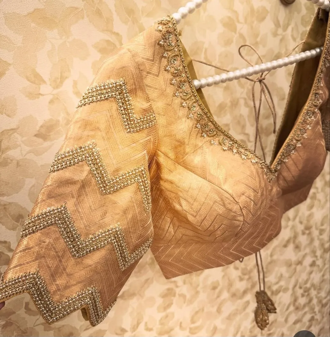 Why Choose Gold Wedding Maggam Work Layer Blouse Tailored Custom Fit at Best Offer Price?