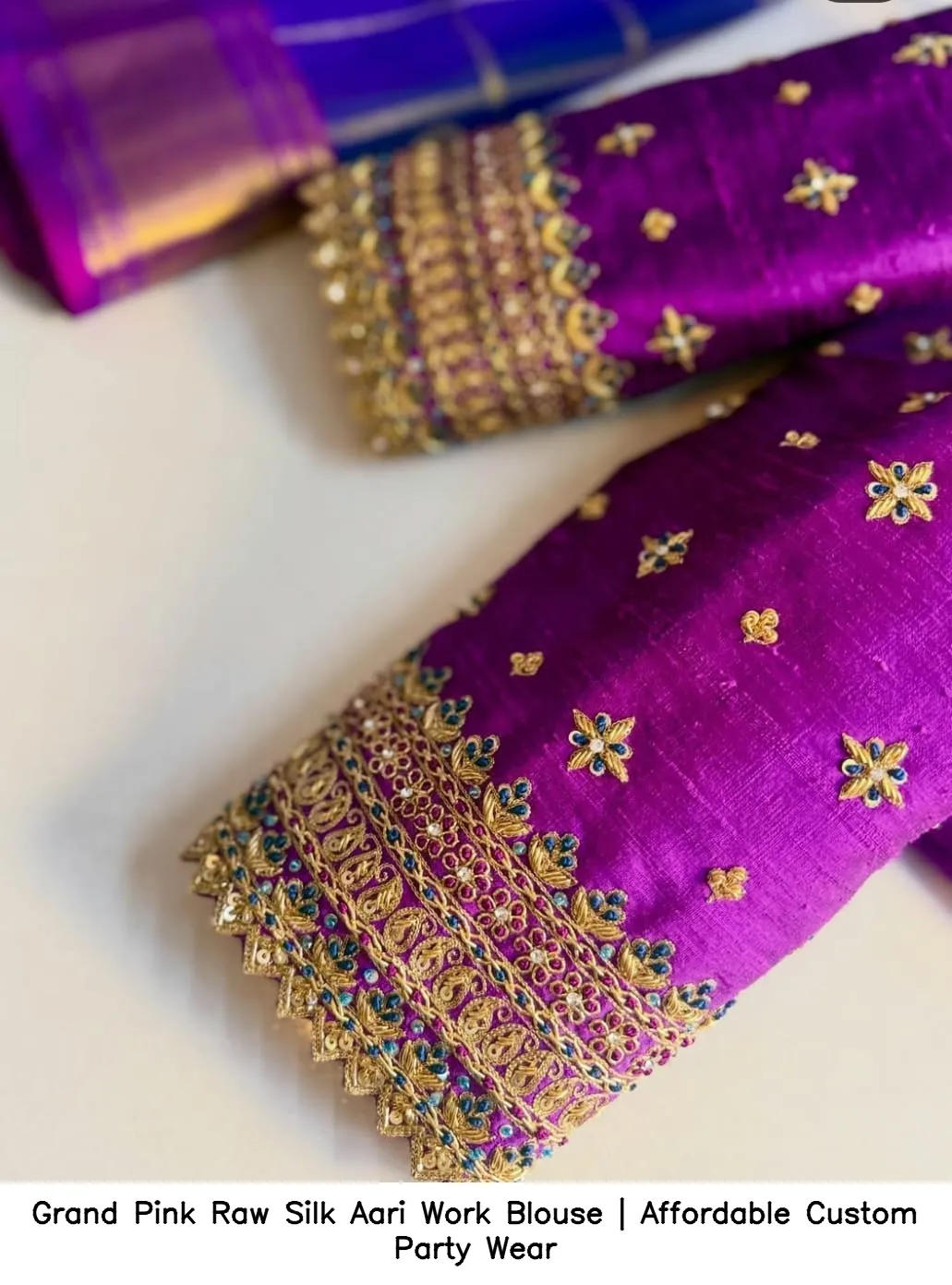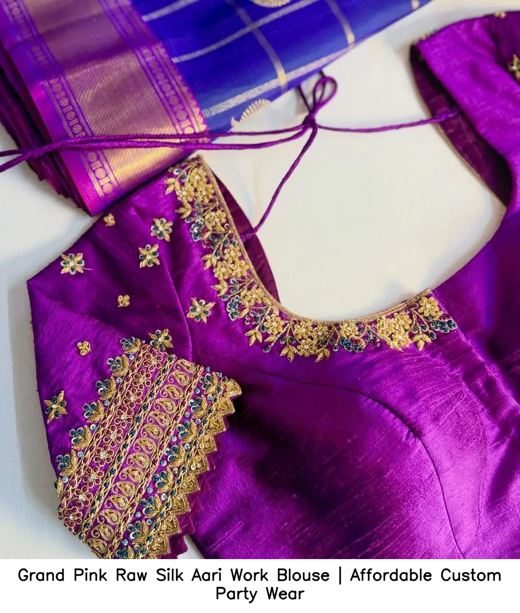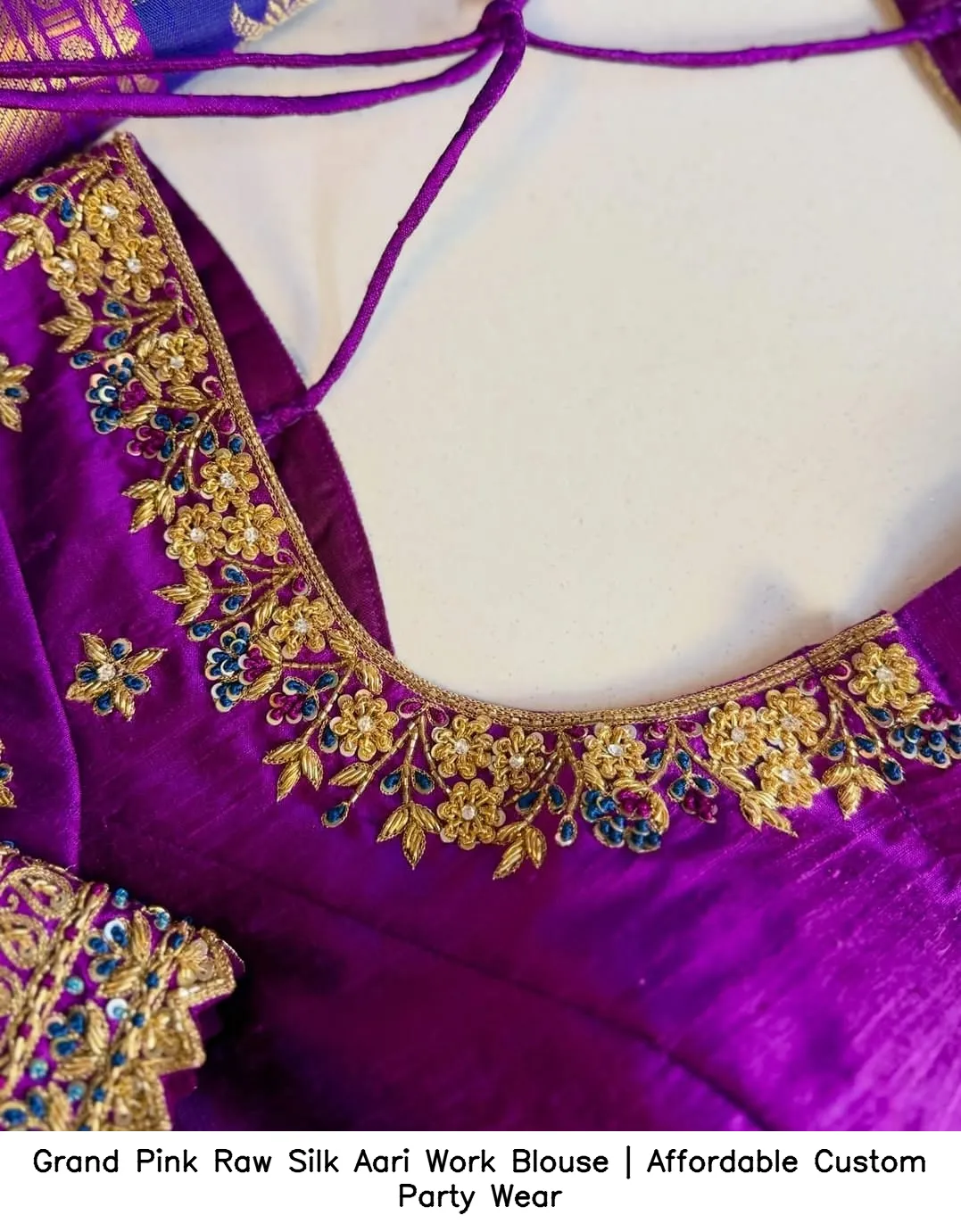 Grand Pink Raw Silk Aari Work Blouse | Affordable Custom Party Wear