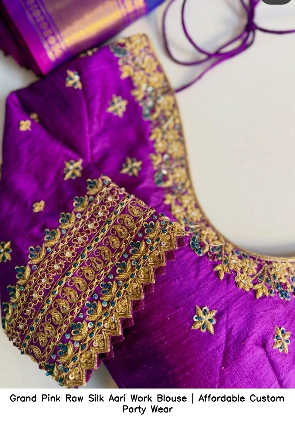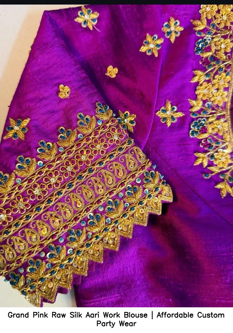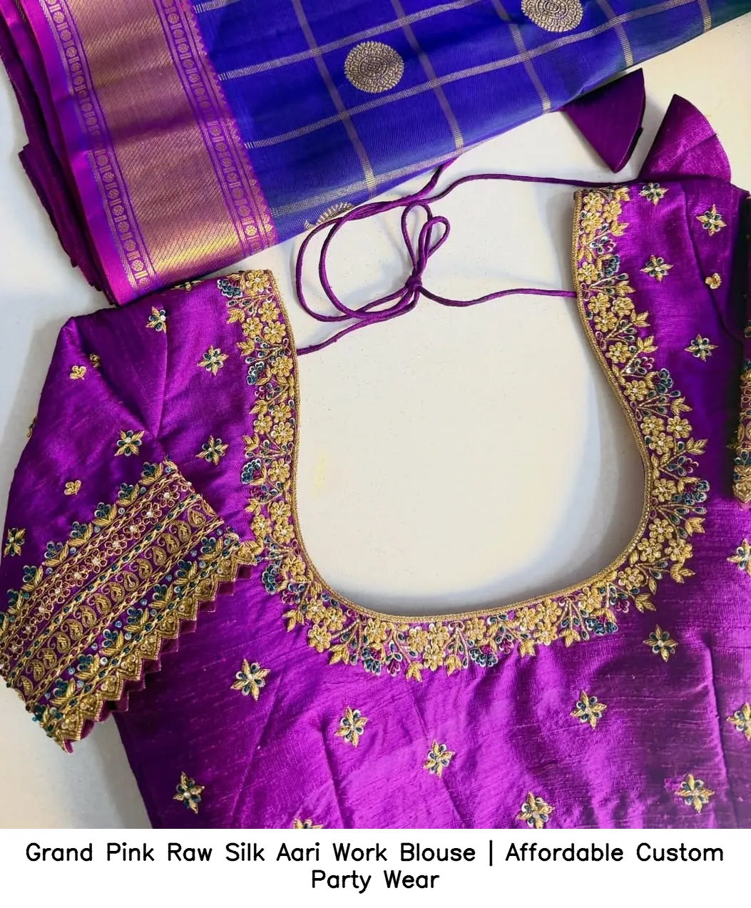 Grand Pink Raw Silk Aari Work Blouse | Affordable Custom Party Wear