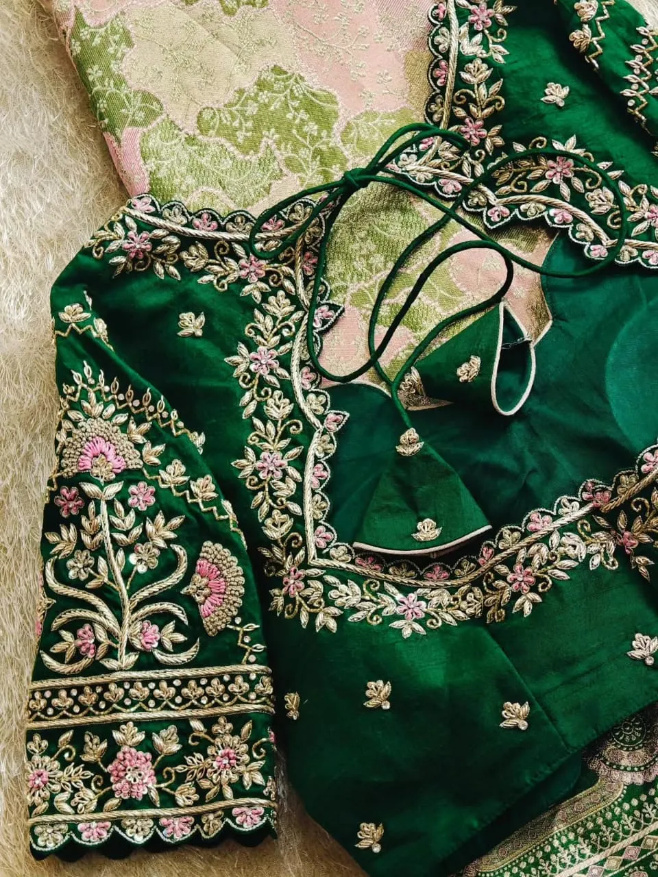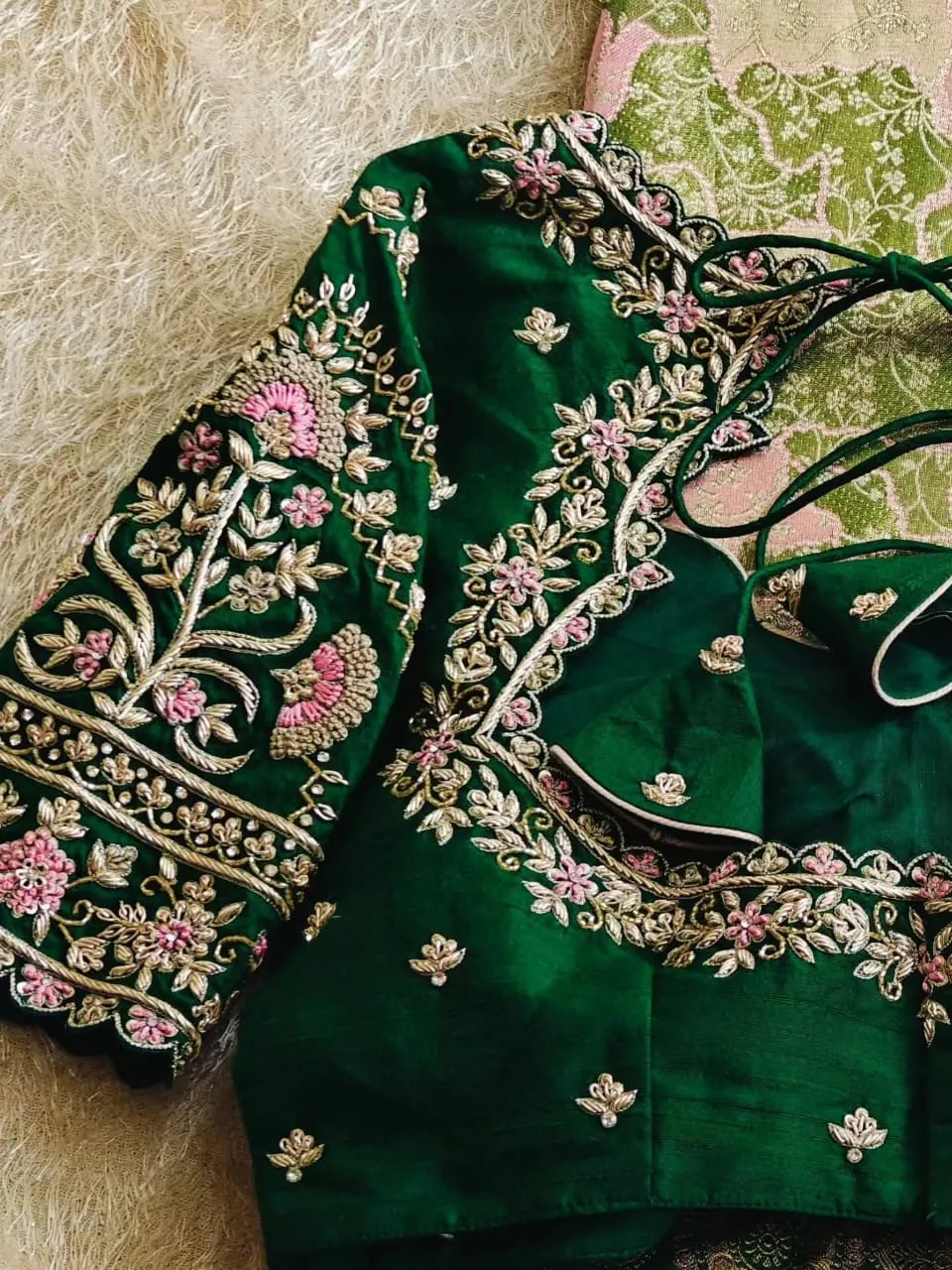 Green Designer Maggam Work Blouse Custom-Fit Perfection for Every Bride