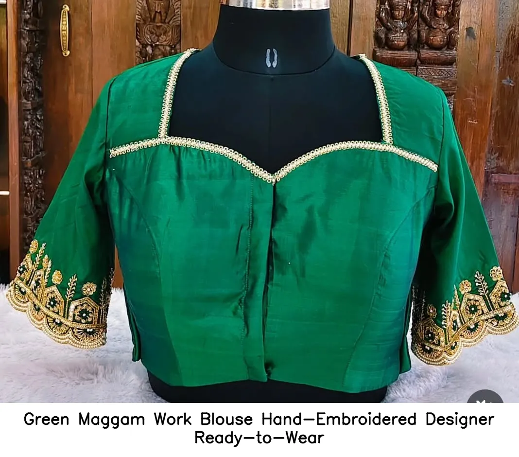 Why Choose Green Maggam Work Blouse Hand-Embroidered Designer Ready-to-Wear?