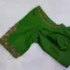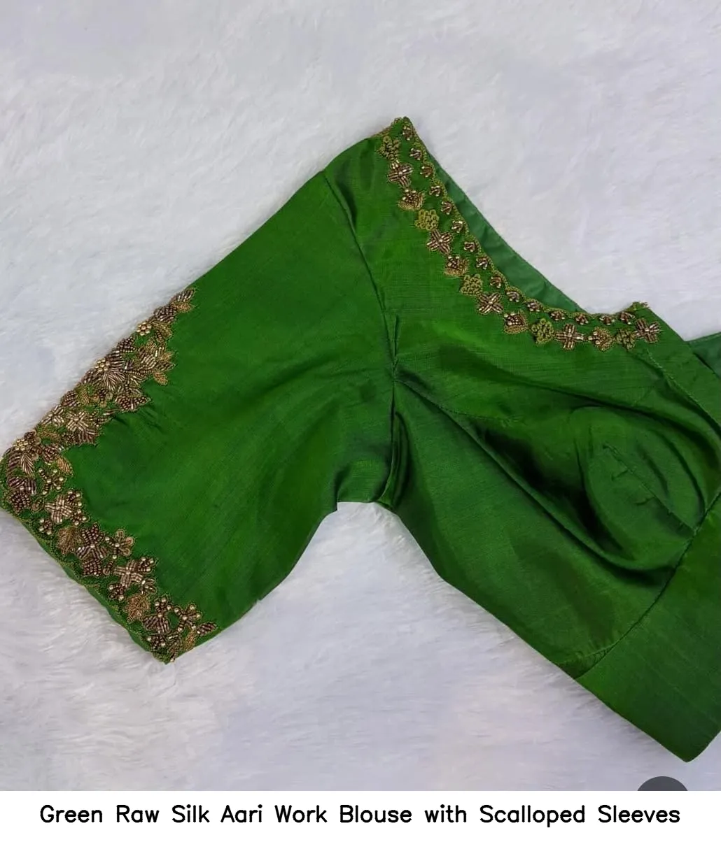 Green Raw Silk Aari Work Blouse with Scalloped Sleeves