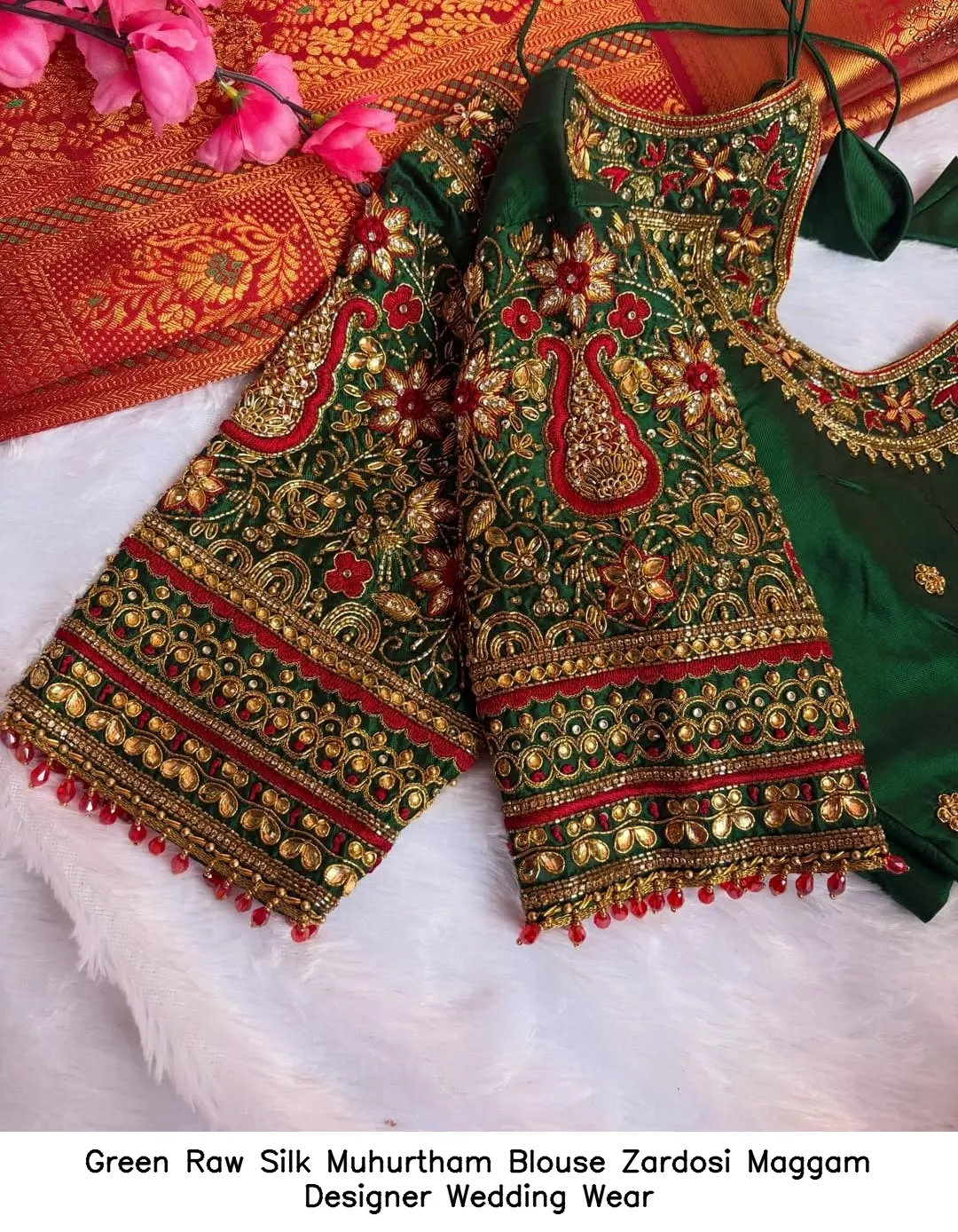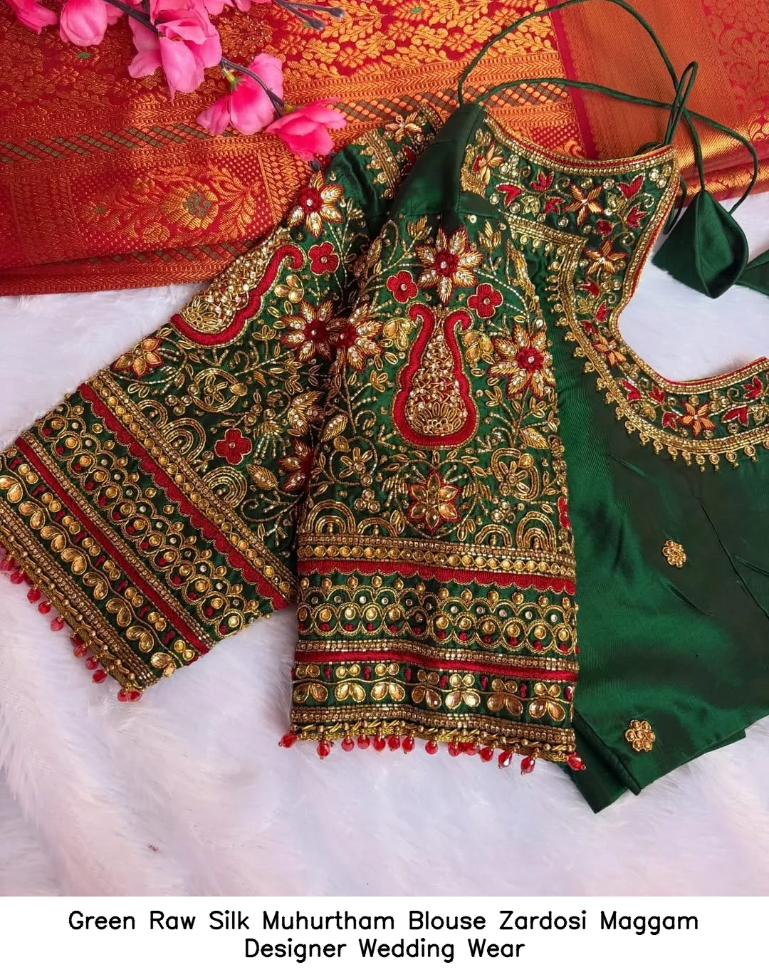 Green Raw Silk Muhurtham Blouse – Zardosi Maggam Designer Wedding Wear Features and Benefits