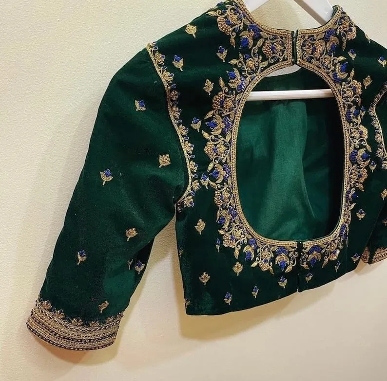 Green Velvet Maggam Aari Work Blouse Timeless Traditional Elegance Online Features and Benefits