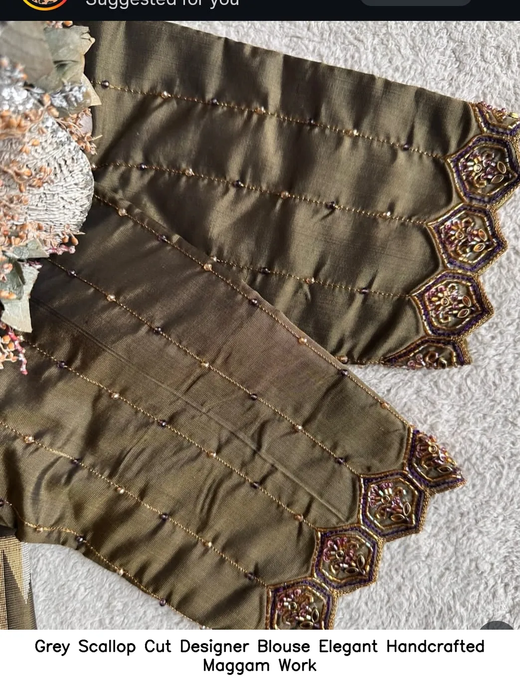 Grey Scallop Cut Designer Blouse – Elegant Handcrafted Maggam Work is a must-have. Following us on social media helps you stay updated on new arrivals. Follow us on Facebook for the latest trends and styles!