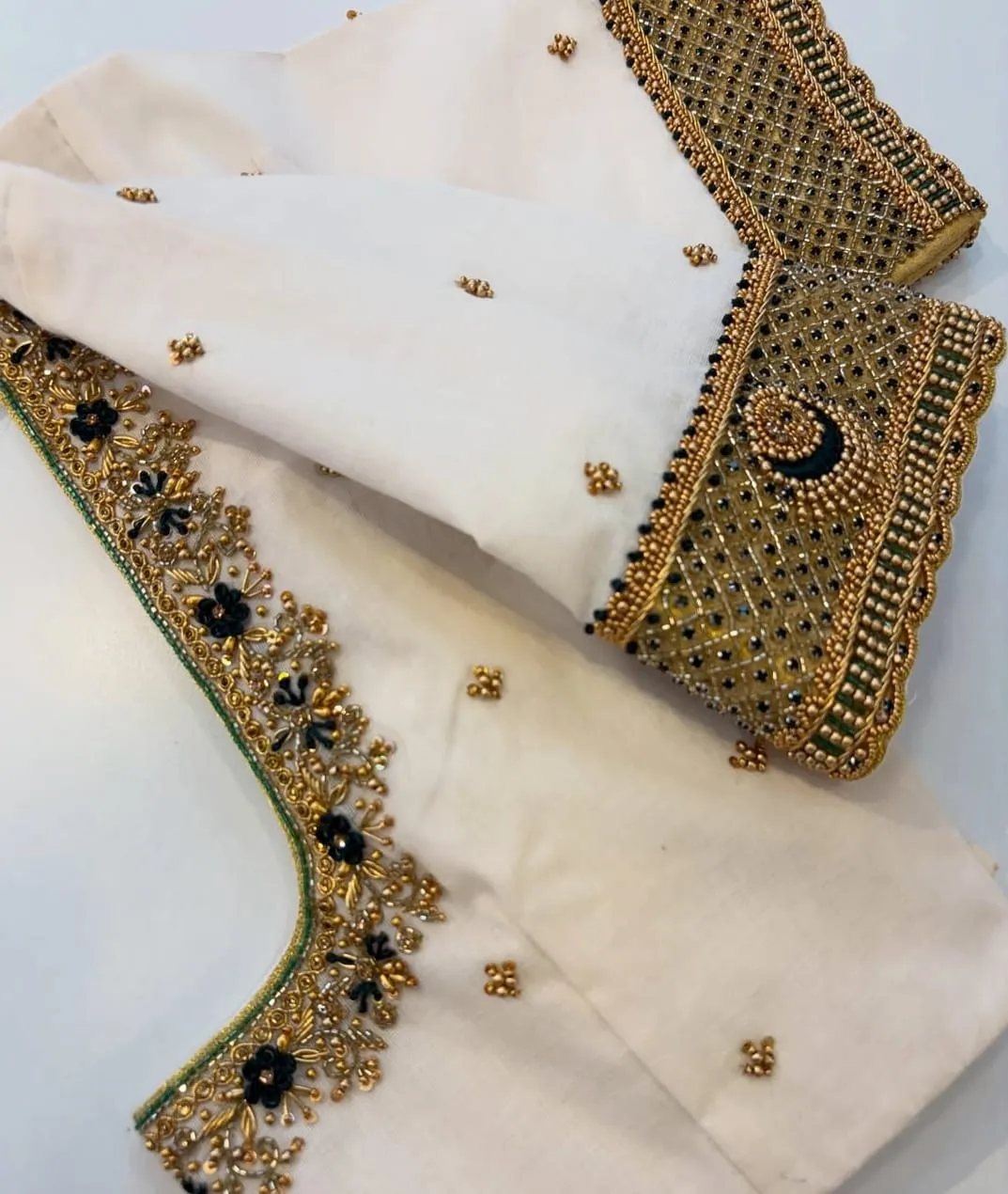 Half White Maggam Work Blouse with Aari Embroidery Premium Quality