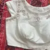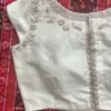 Product Name: Half White Raw Silk Designer Blouse – Gold Silver Maggam Aari Work