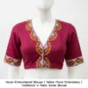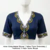 Product Name: Hand-Embroidered Blouse | Yellow Floral Embroidery | Traditional V-Neck Saree Blouse