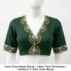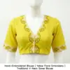 Hand-Embroidered Blouse | Yellow Floral Embroidery | Traditional V-Neck Saree Blouse