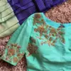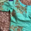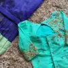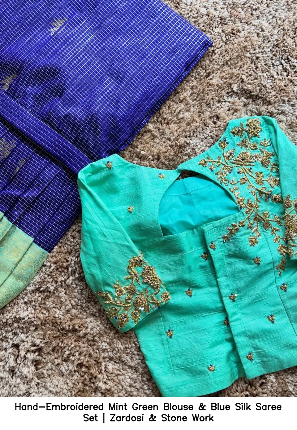Product Name: Hand-Embroidered Mint Green Blouse & Blue Silk Saree Set | Zardosi & Stone Work