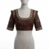 To maintain the beauty of your Hand-Embroidered Silk Blouse, hand wash in cold water and avoid direct sunlight. Store it in a cool, dry place to preserve the intricate Zardosi work.