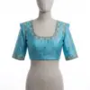 A: The blouse is made from high-quality silk and features intricate zardosi work, which adds a luxurious touch to the garment.