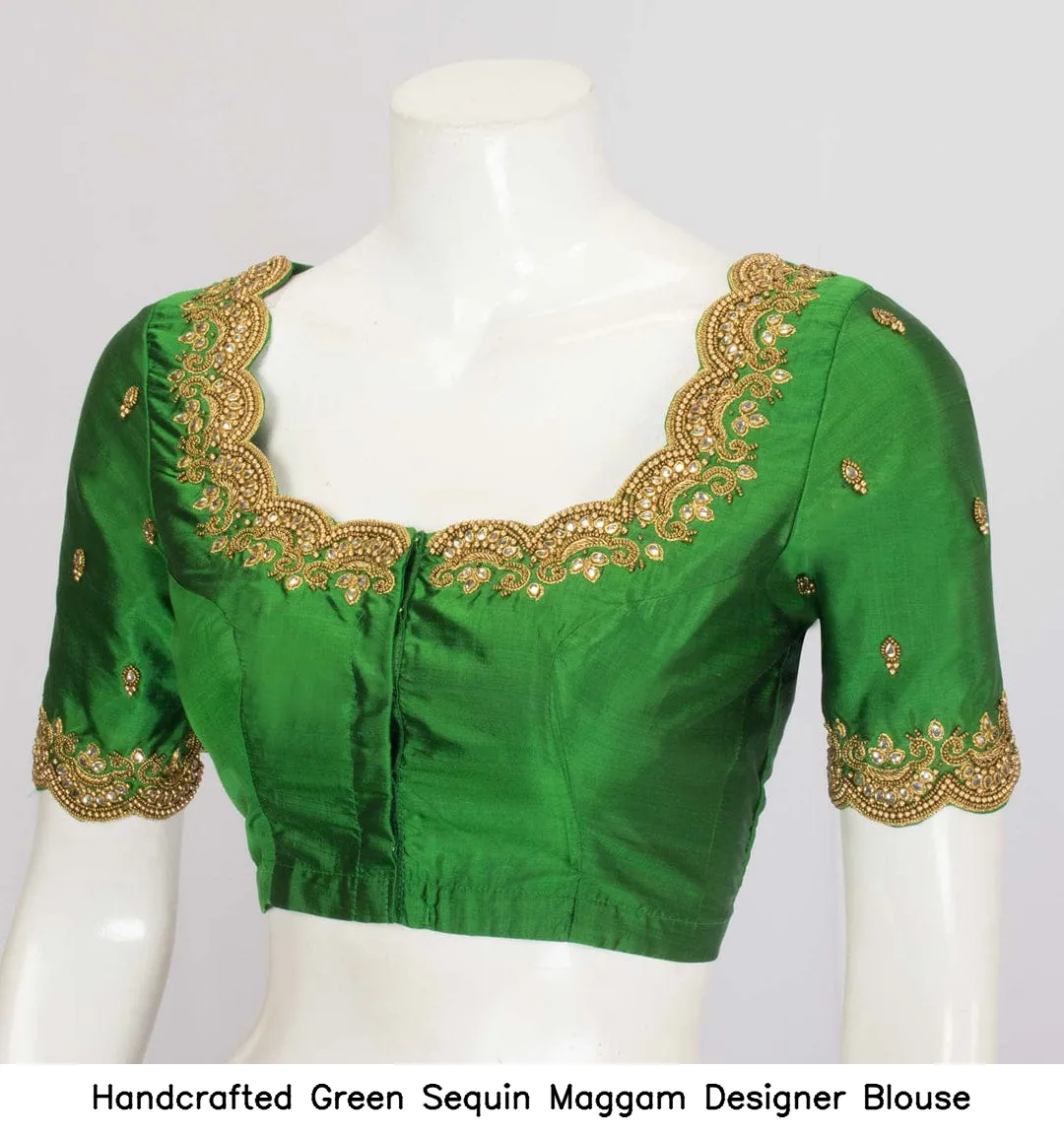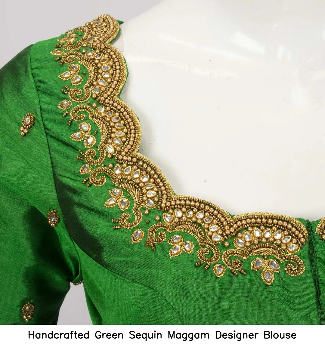 Handcrafted Green Sequin Maggam Designer Blouse