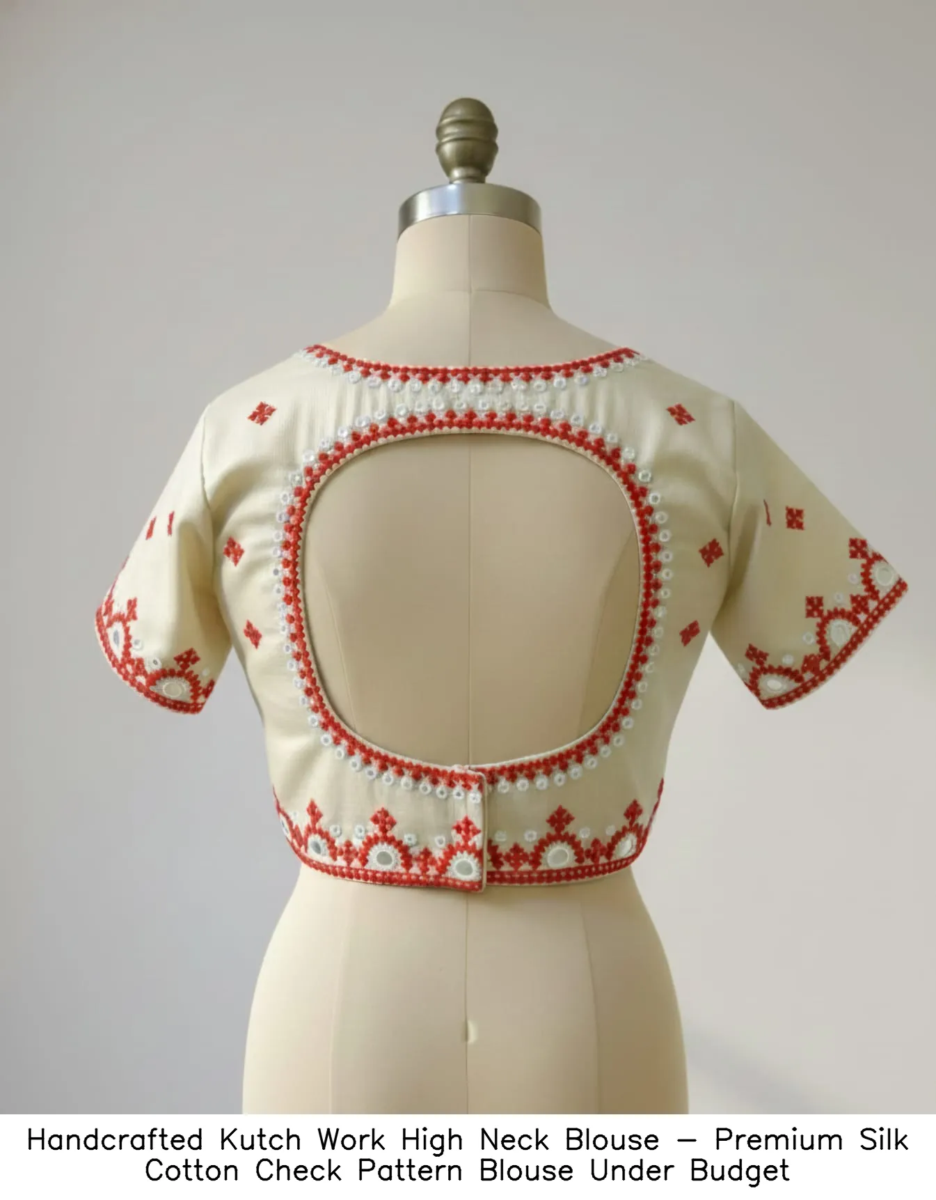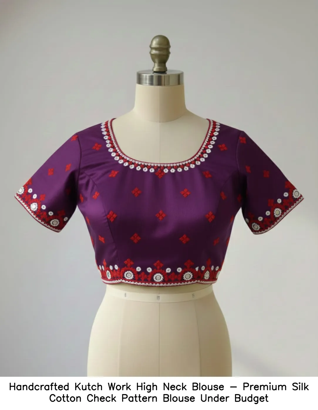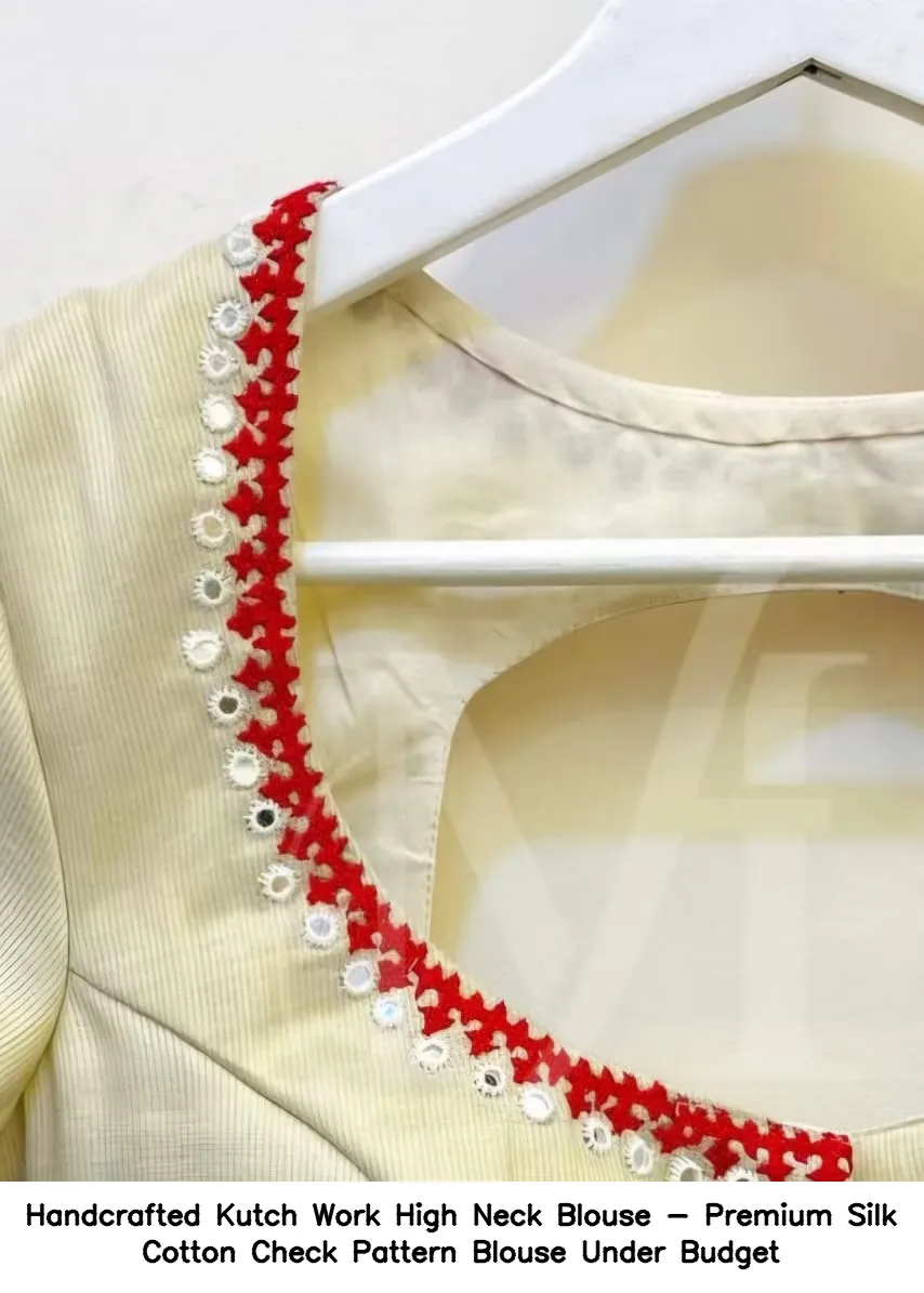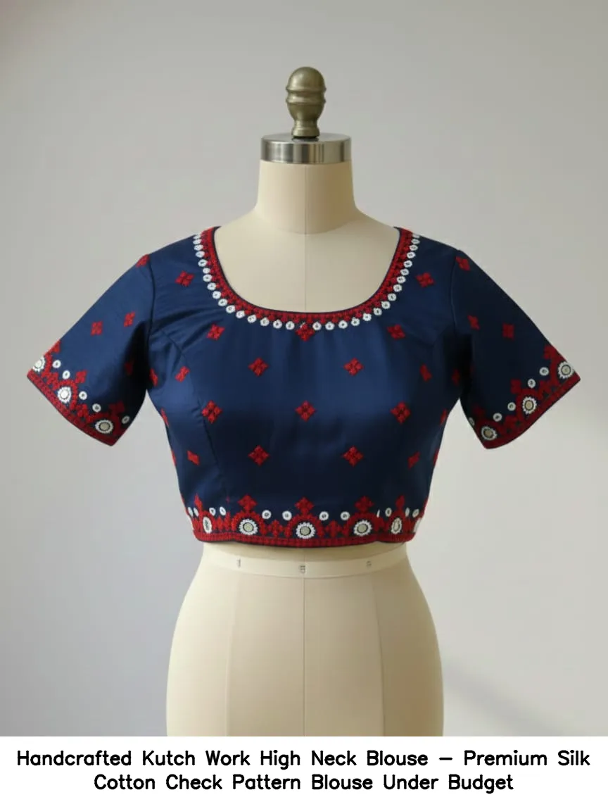 Handcrafted Kutch Work High Neck Blouse – Premium Silk Cotton Check Pattern Blouse Under Budget Features and Benefits
