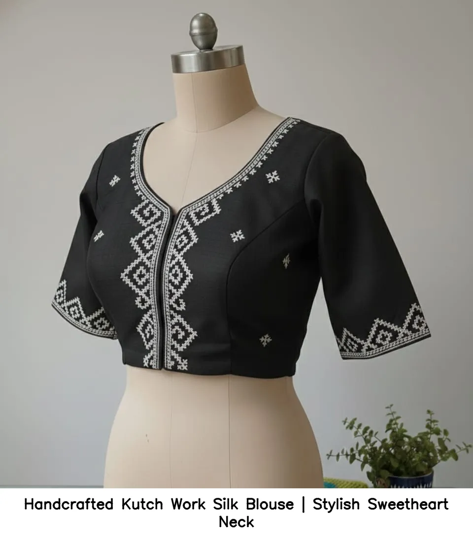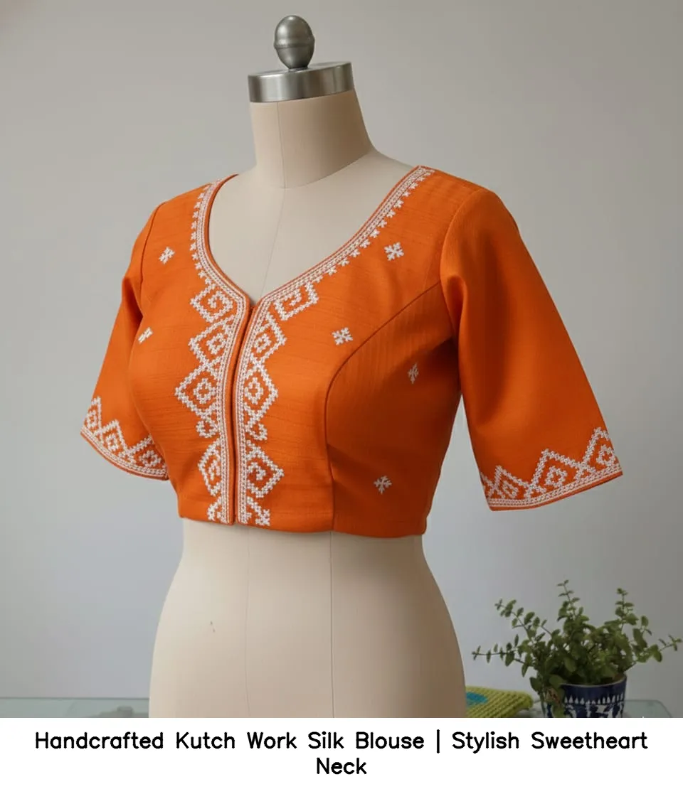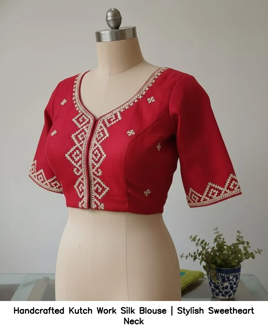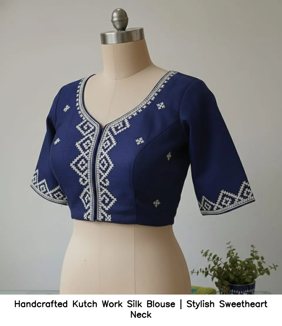 Handcrafted Kutch Work Silk Blouse | Stylish Sweetheart Neck Features and Benefits