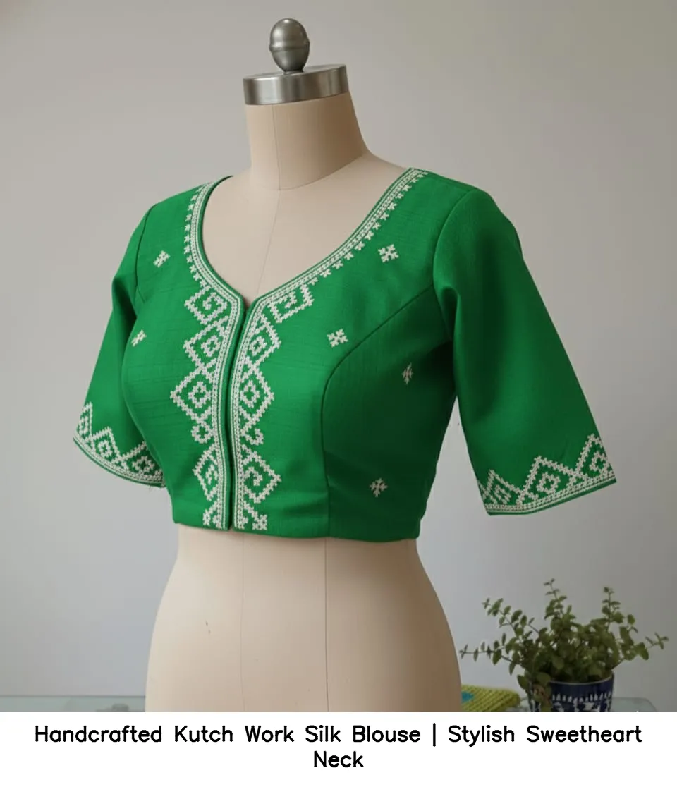 Why Choose Handcrafted Kutch Work Silk Blouse | Stylish Sweetheart Neck?