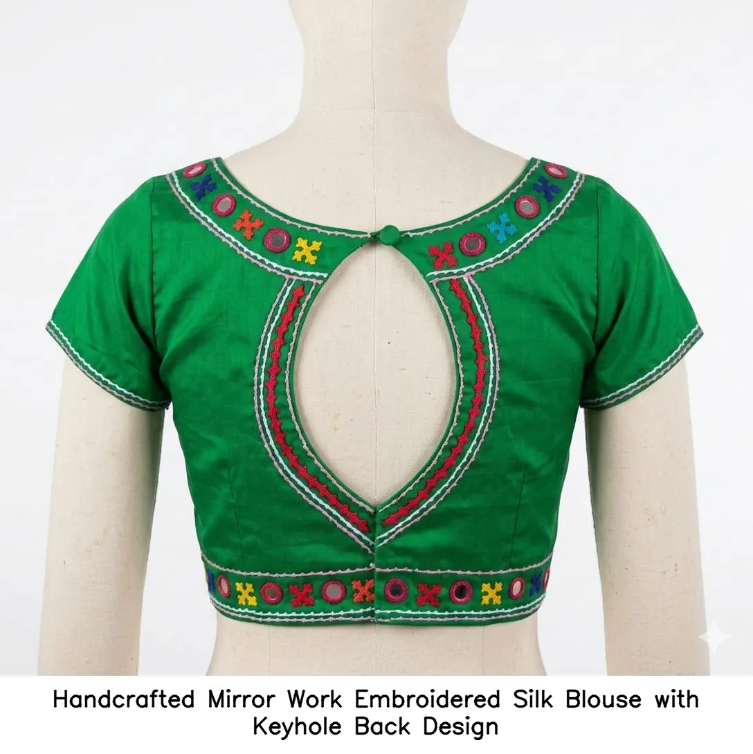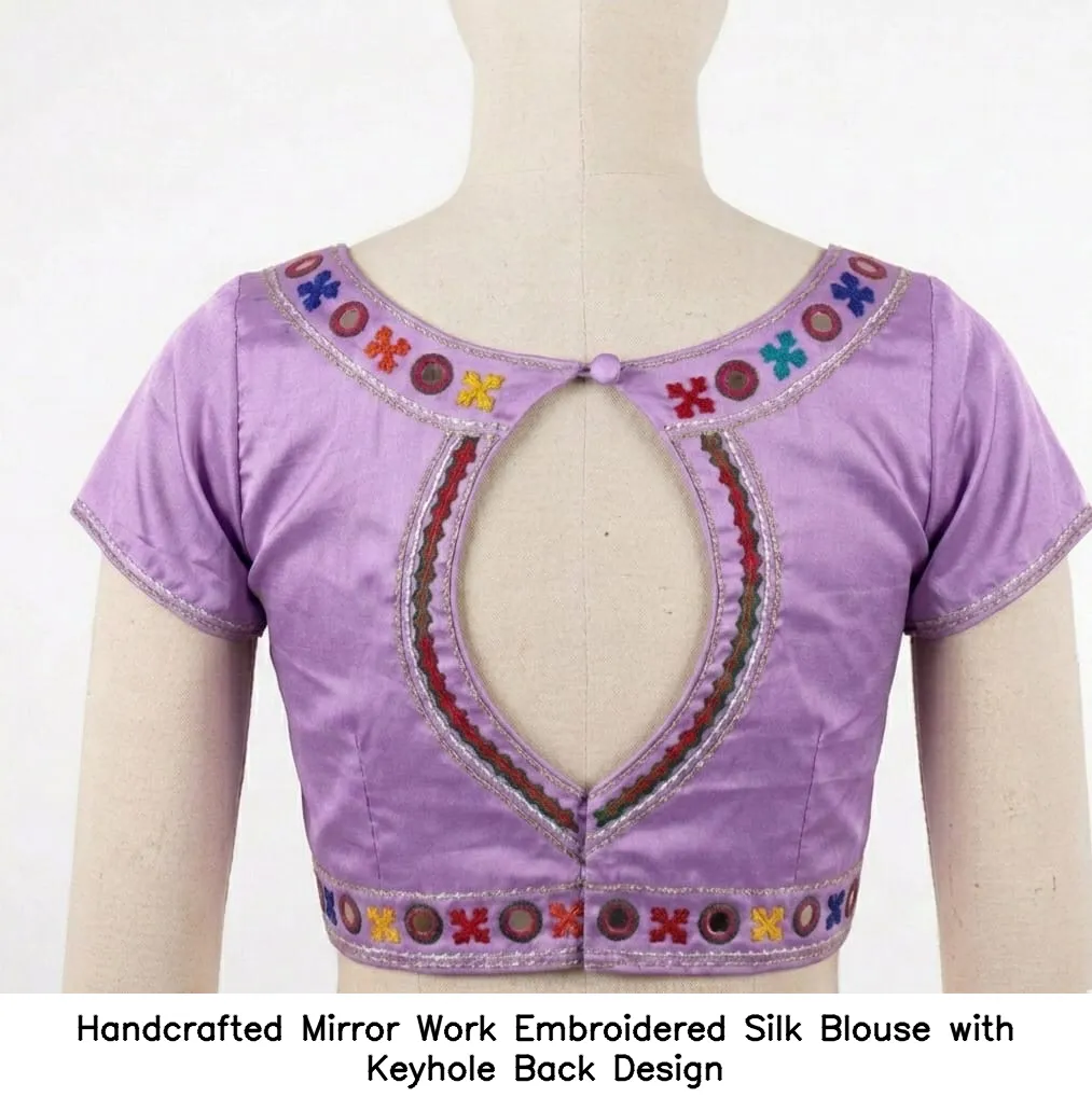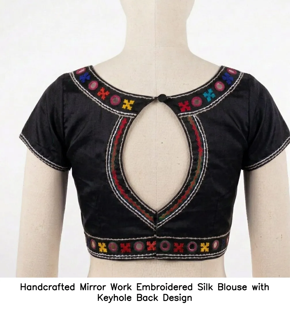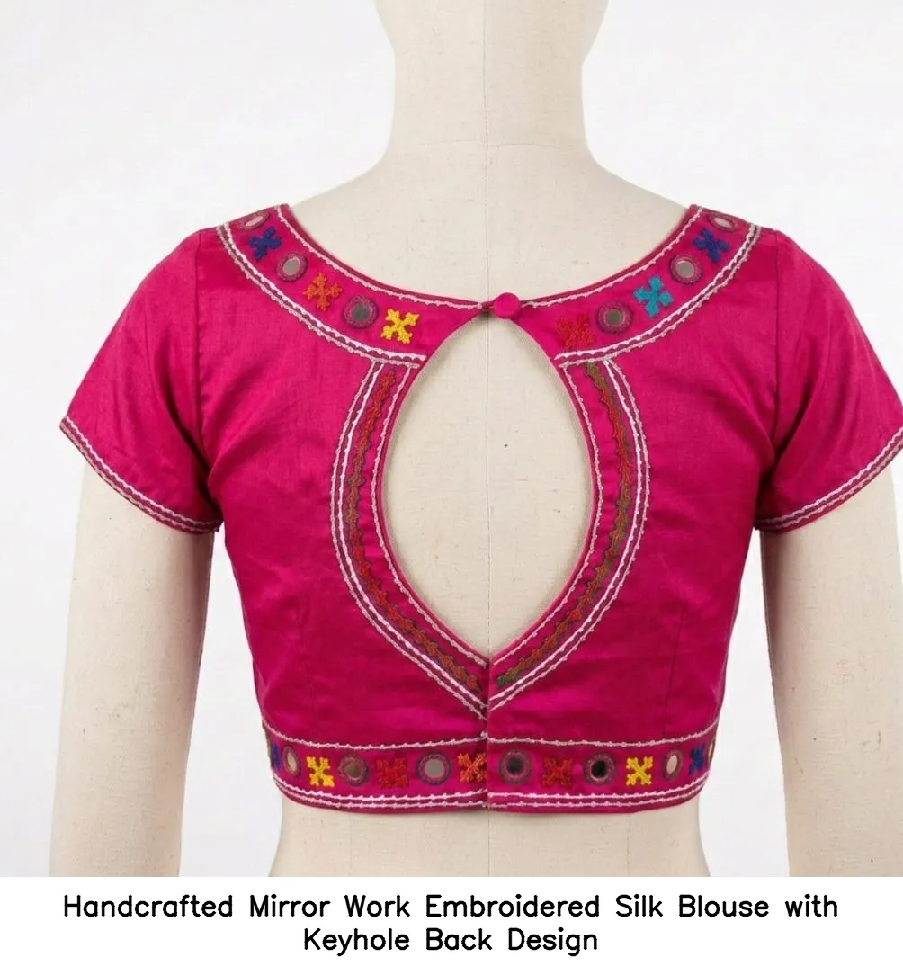 Product Name: Handcrafted Mirror Work Embroidered Silk Blouse with Keyhole Back Design