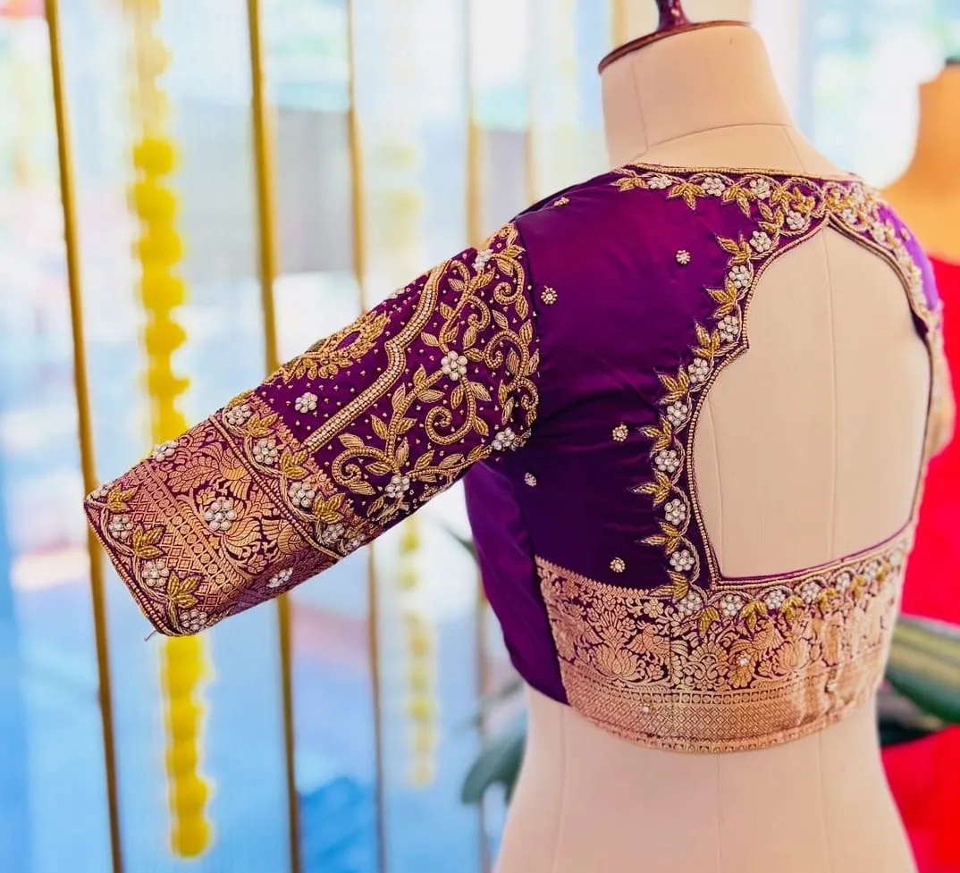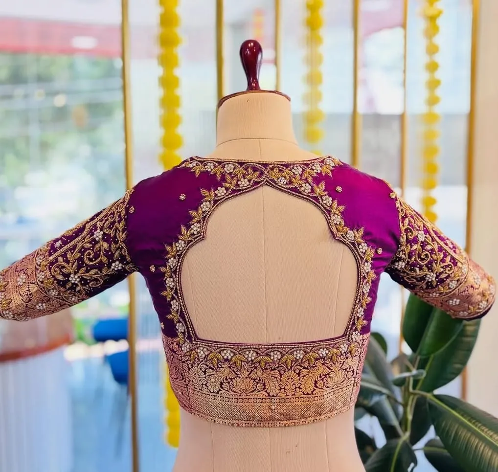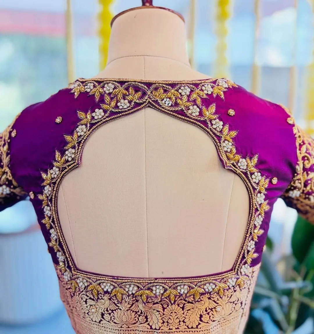 Handcrafted Pink Peacock Maggam Work Blouse for Weddings Grand Occasions