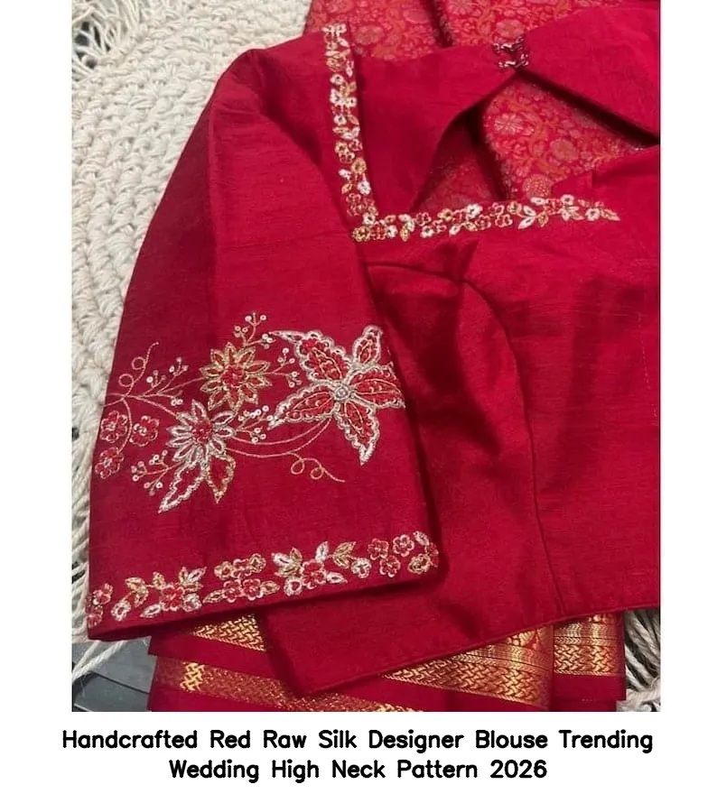 Why Choose Handcrafted Red Raw Silk Designer Blouse – Trending Wedding High Neck Pattern 2026?