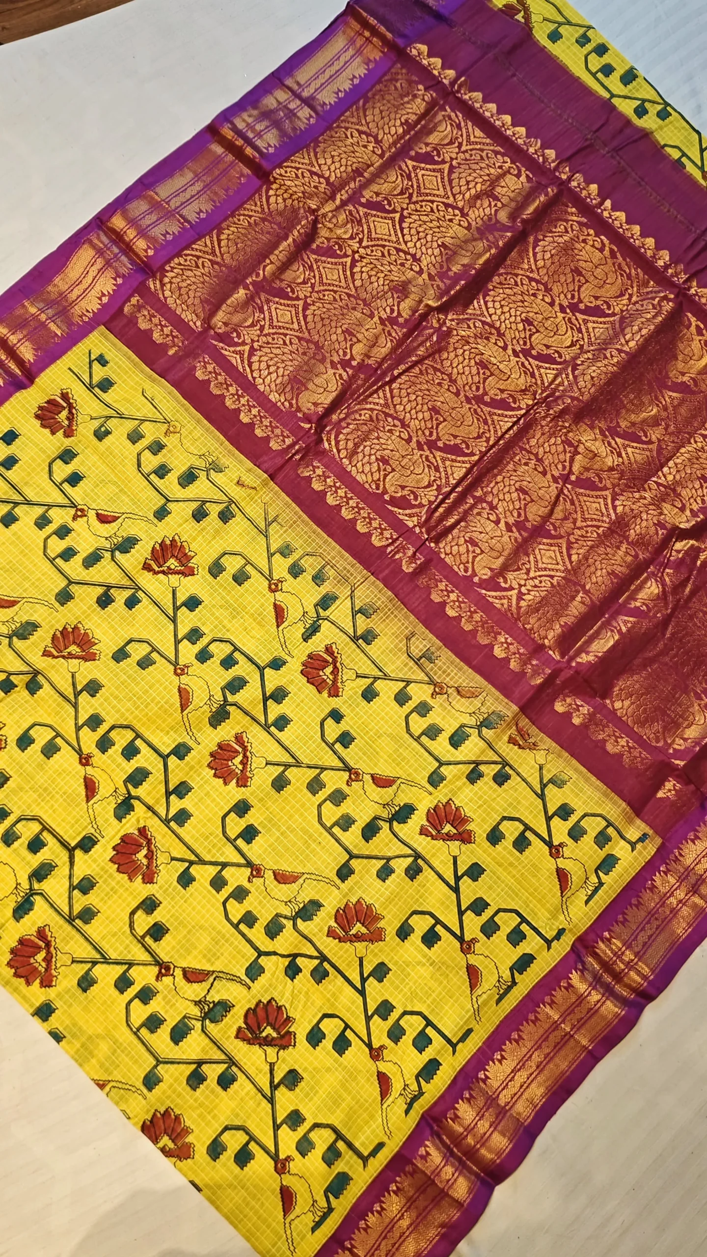 Heritage Gadwal Cotton Kalamkari Saree Masterpiece in Kuthu Interlock Weaving