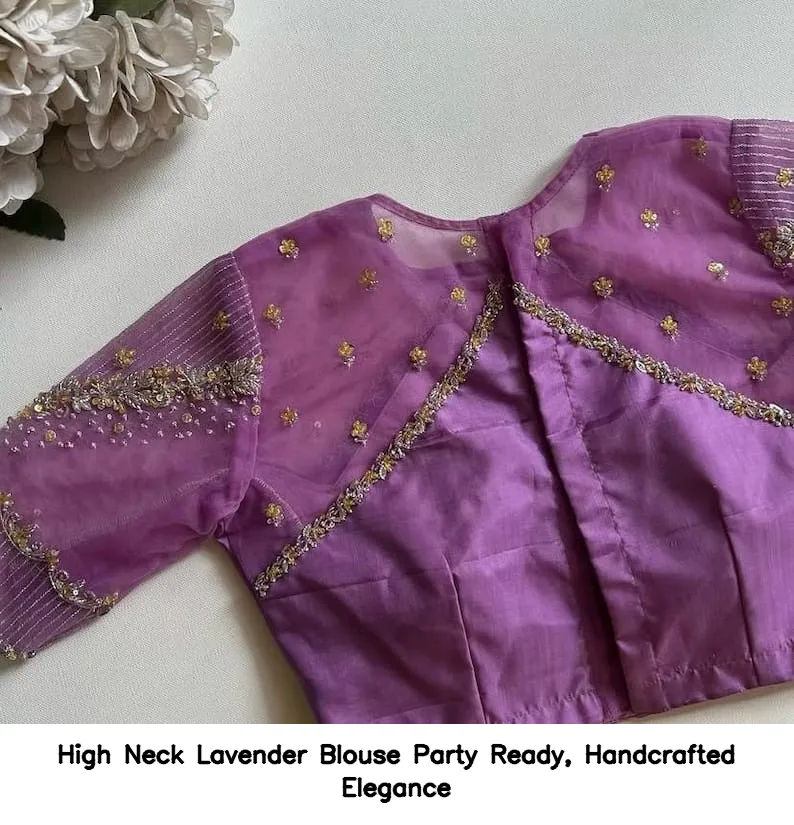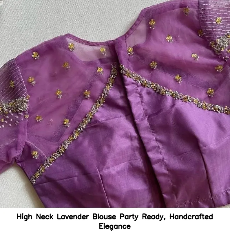 High Neck Lavender Blouse – Party Ready, Handcrafted Elegance