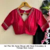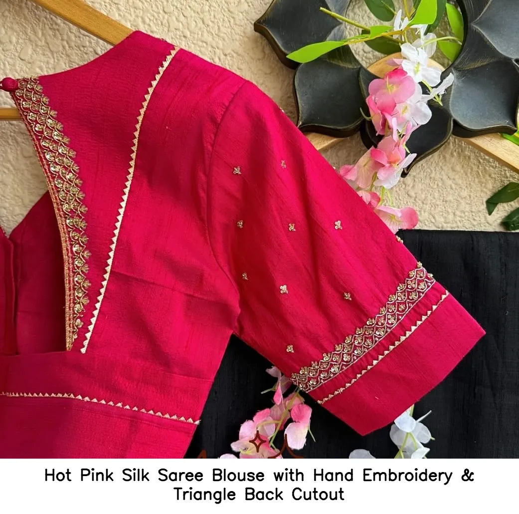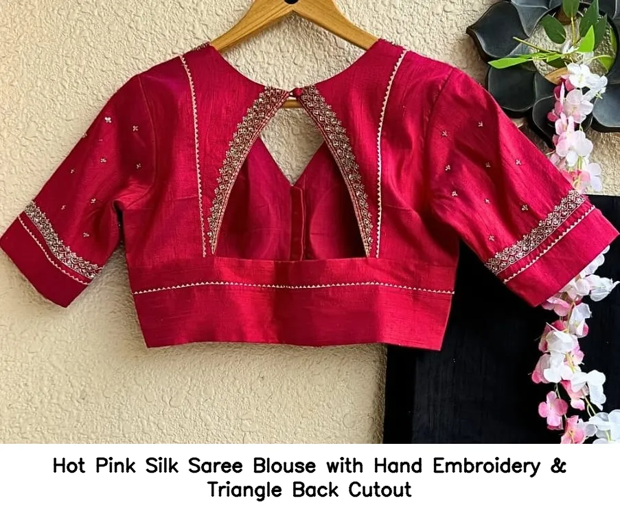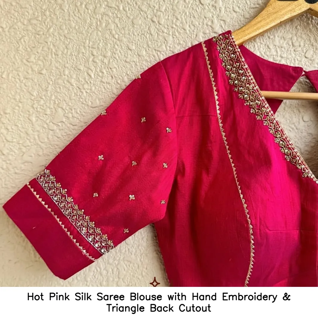 Product Name: Hot Pink Silk Saree Blouse with Hand Embroidery & Triangle Back Cutout