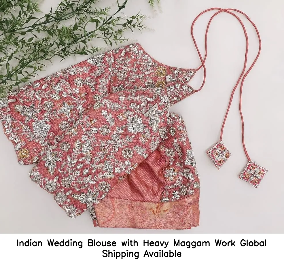 Indian Wedding Blouse with Heavy Maggam Work – Global Shipping Available