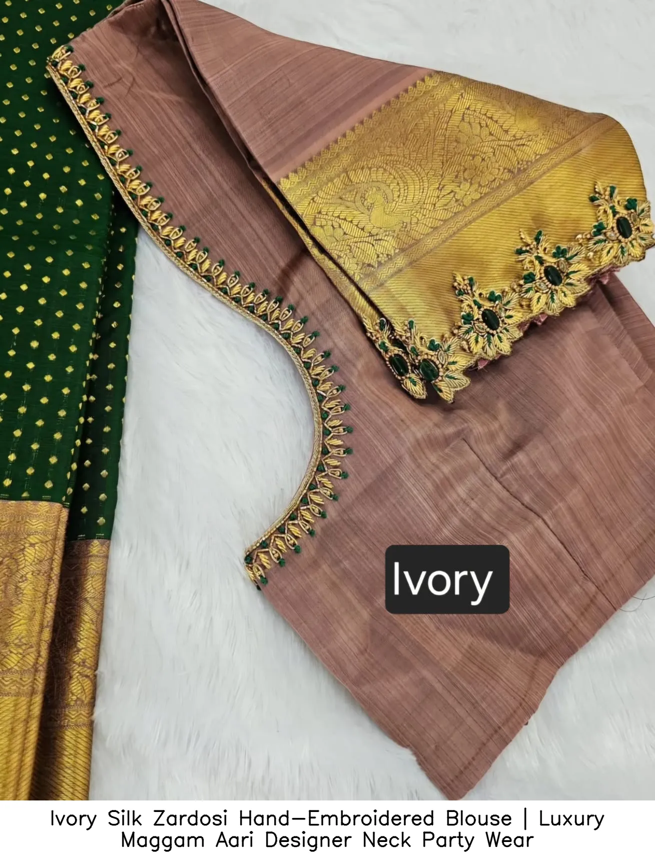 Product Name: ​Ivory Silk Zardosi Hand-Embroidered Blouse | Luxury Maggam Aari Designer Neck Party Wear