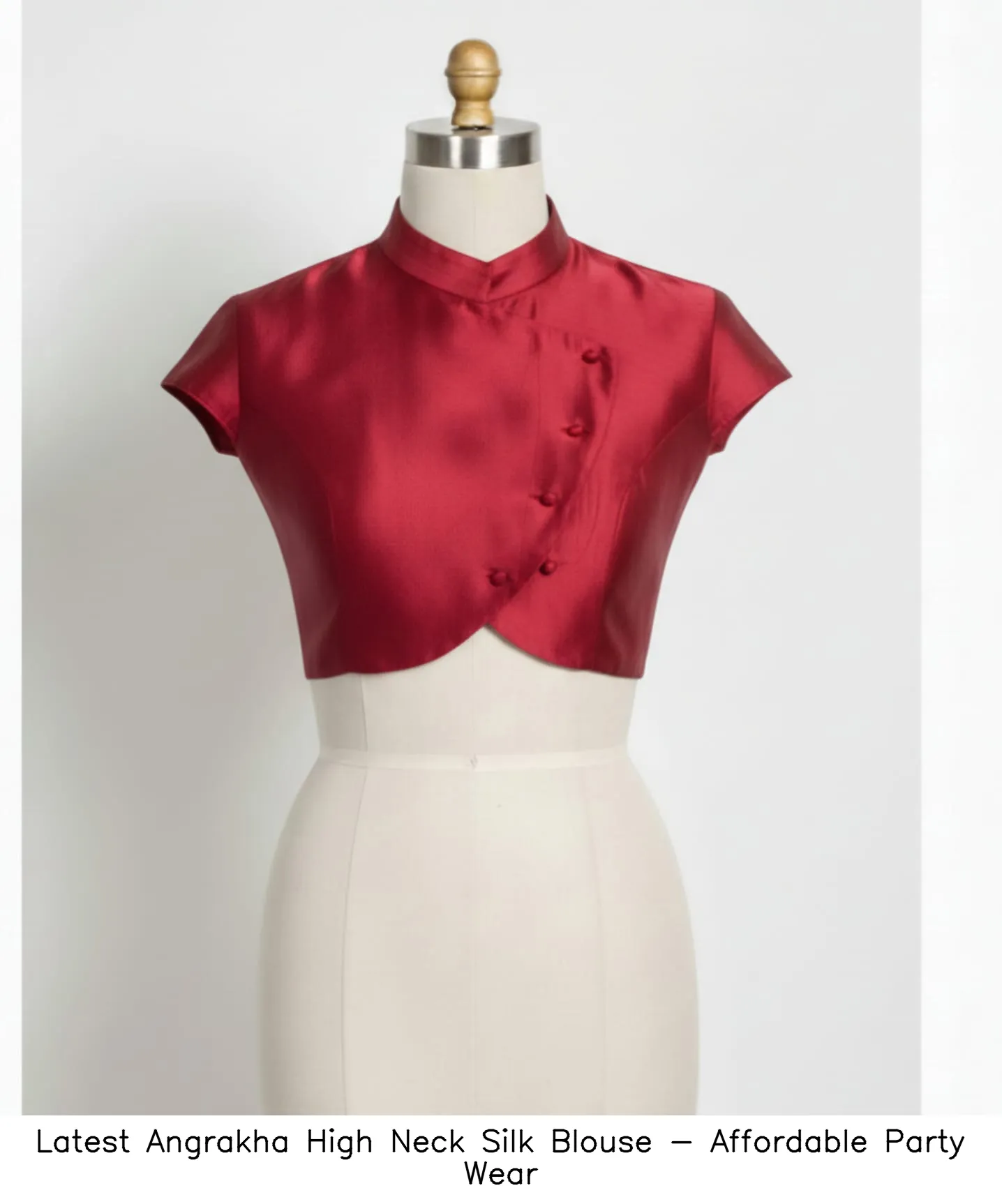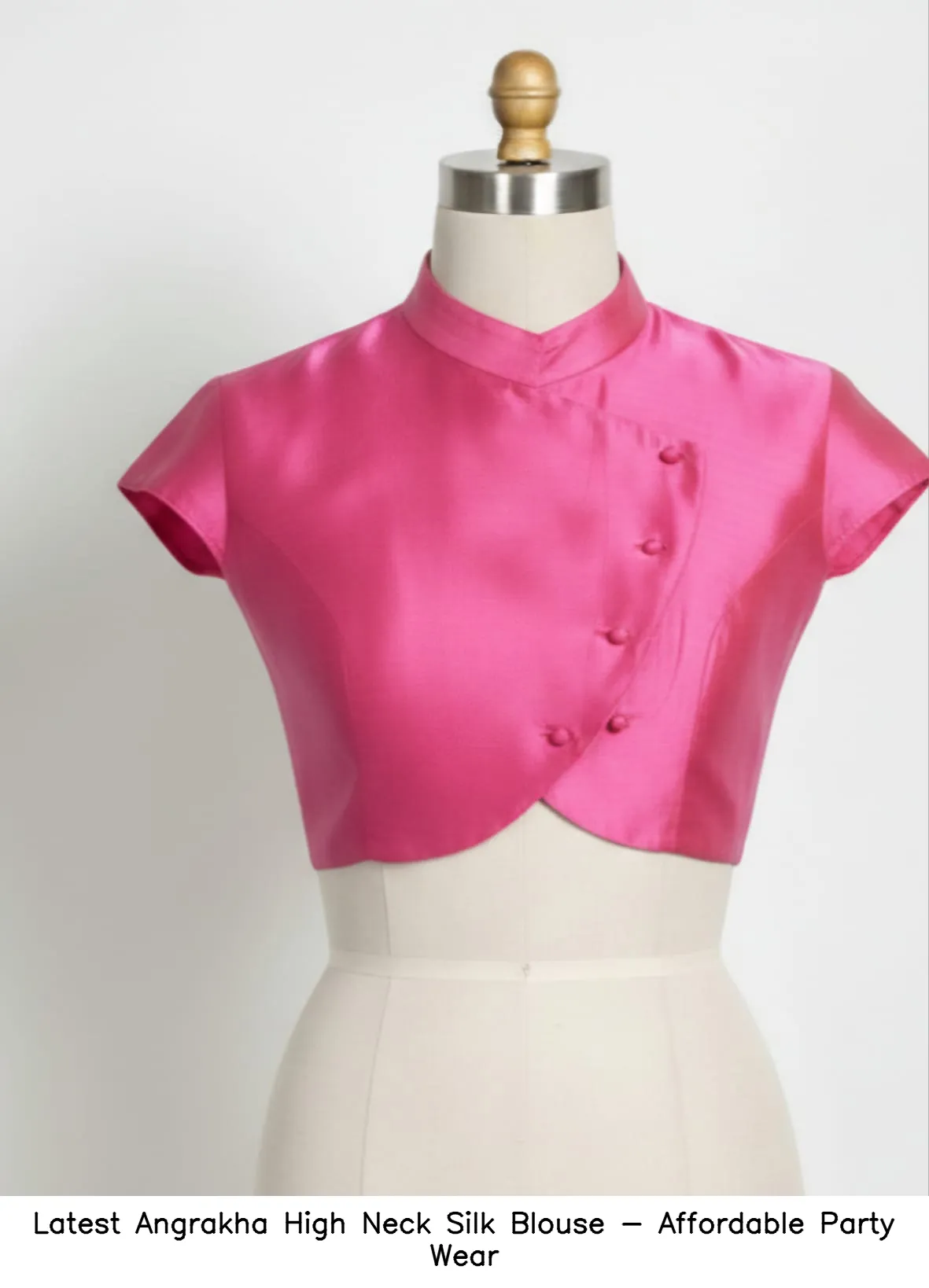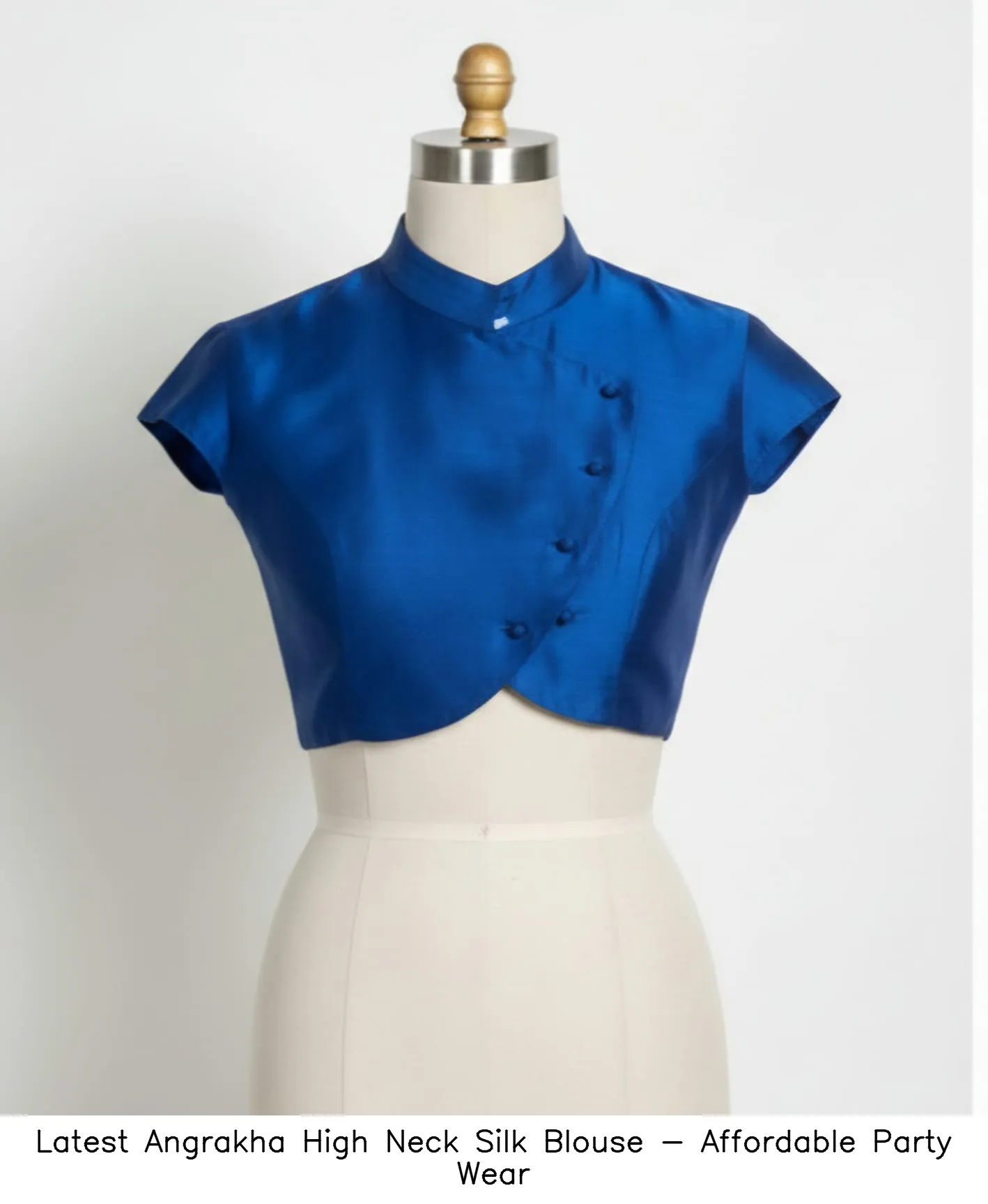 ​​Latest Angrakha High Neck Silk Blouse – Affordable Party Wear