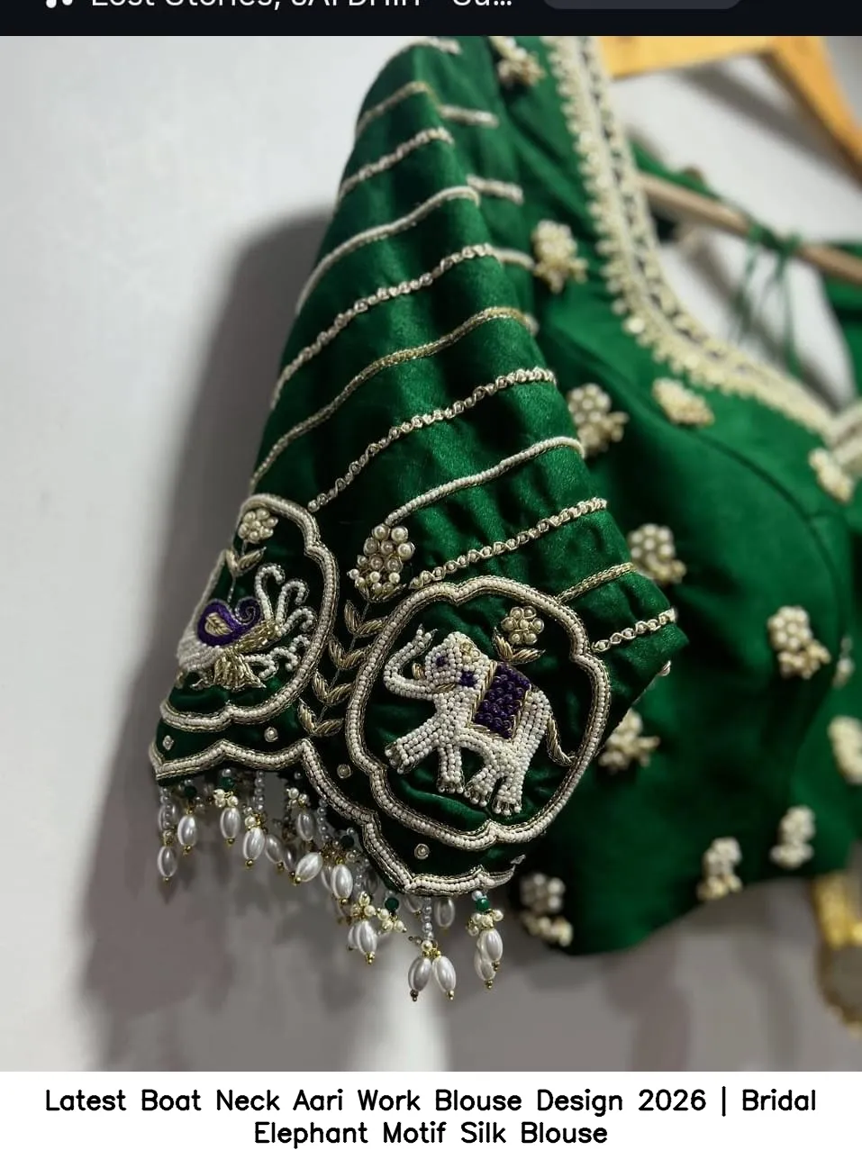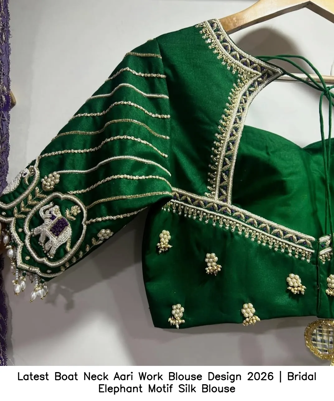 Why Choose Latest Boat Neck Aari Work Blouse Design 2026 | Bridal Elephant Motif Silk Blouse?