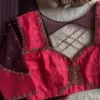 Crafted from premium half pattu fabric, this blouse comes in red, pink, blue, purple, and wine colors. Sizes available are XL, XXL, and 3XL. For more options, browse our collection.