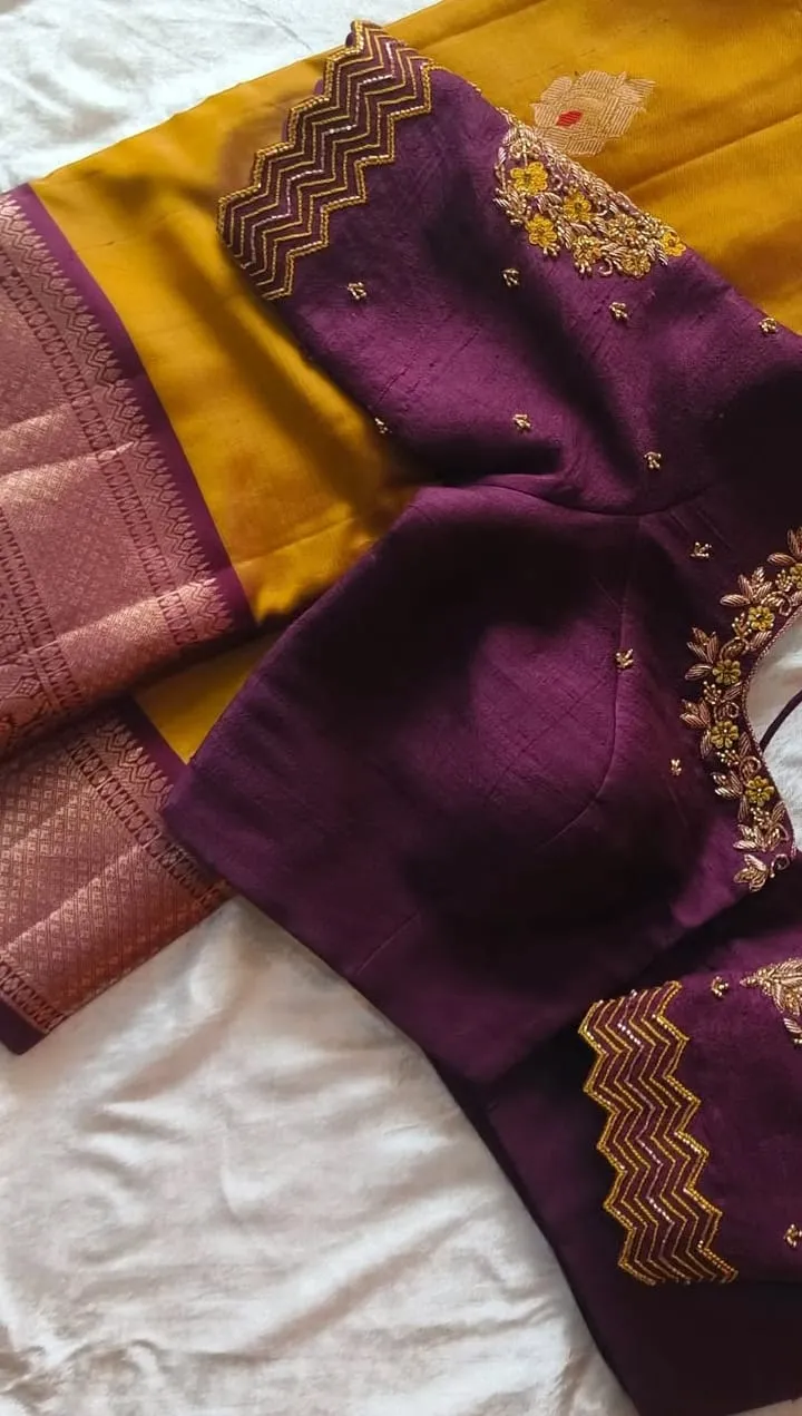A: We use high-quality silk thread for durability and elegance. This ensures your blouse remains stylish and comfortable for any occasion.