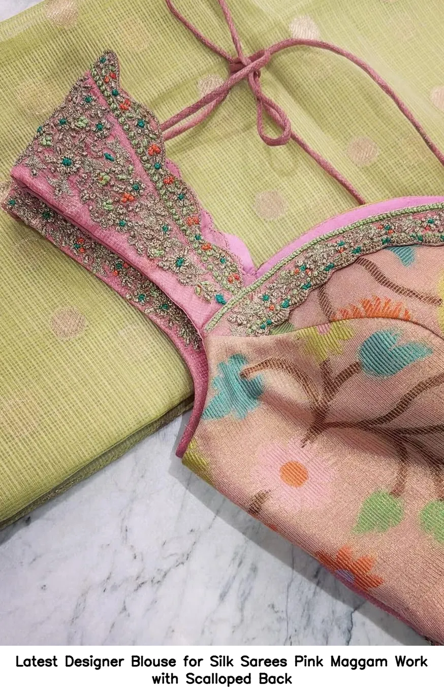 Latest Designer Blouse for Silk Sarees – Pink Maggam Work with Scalloped Back