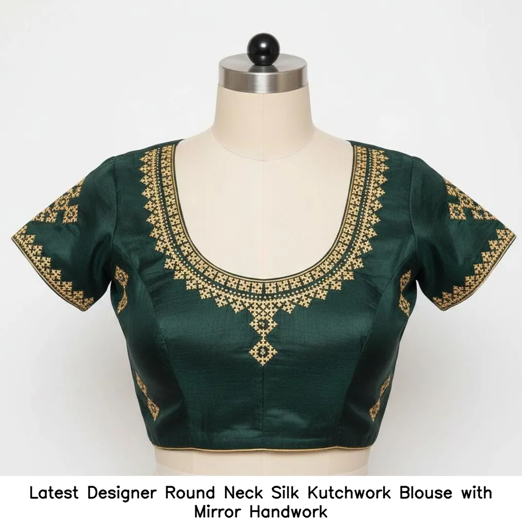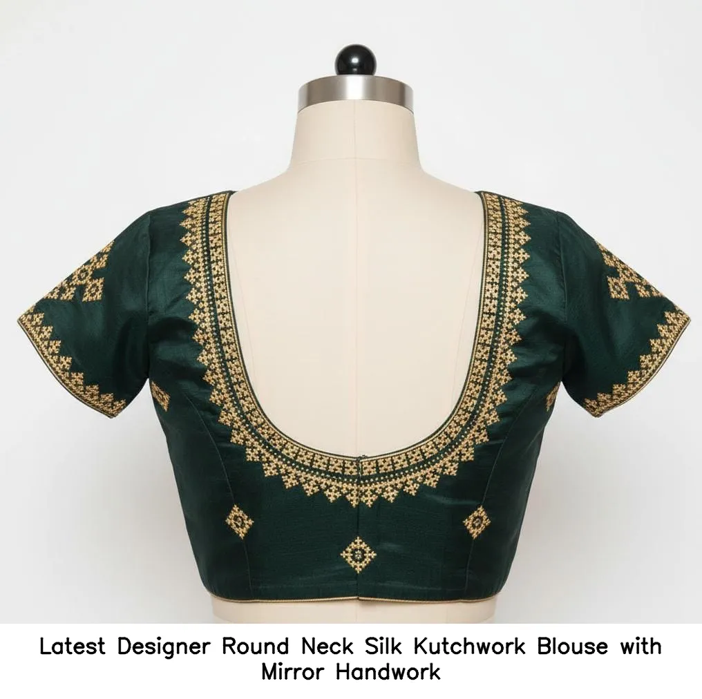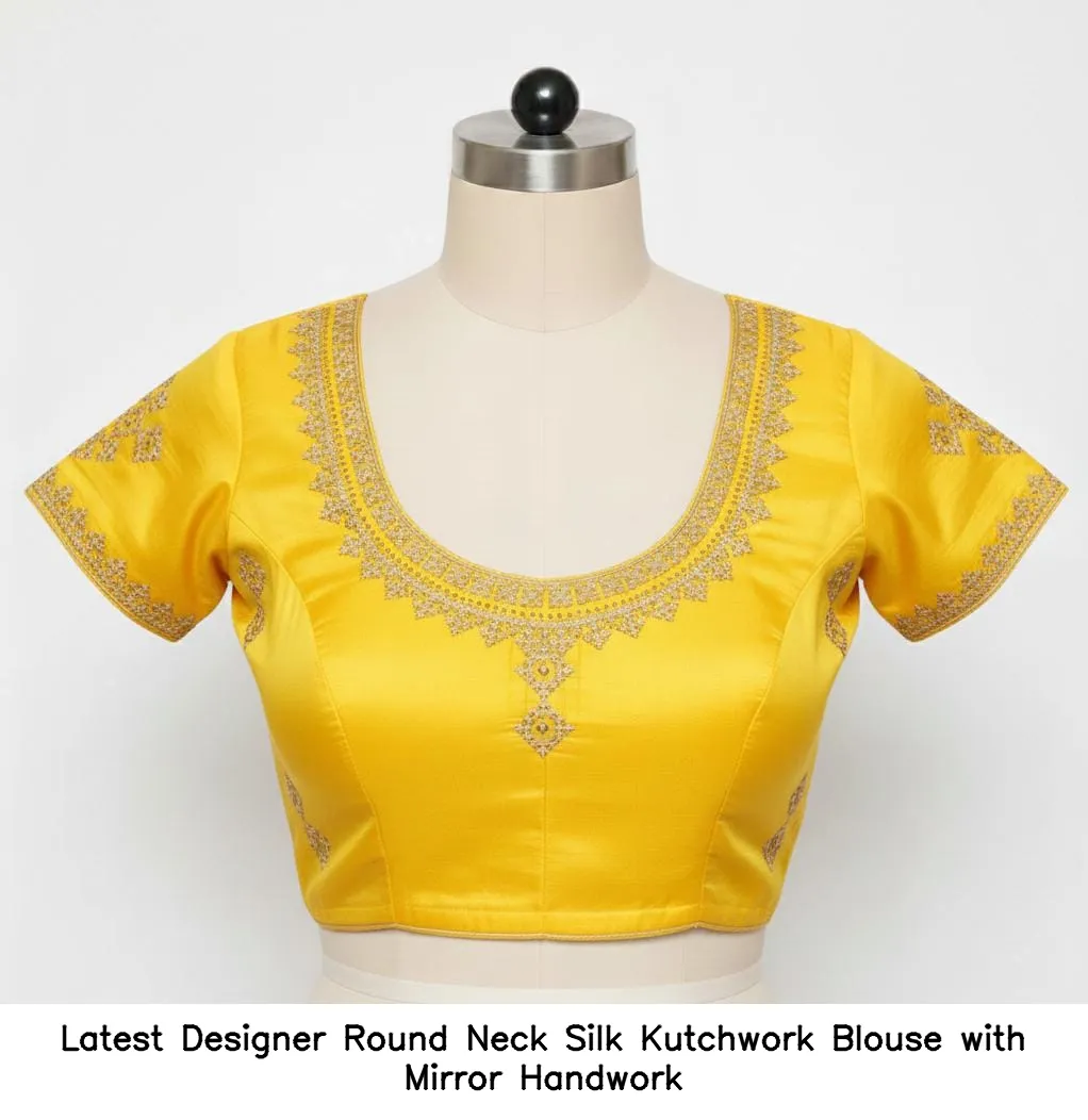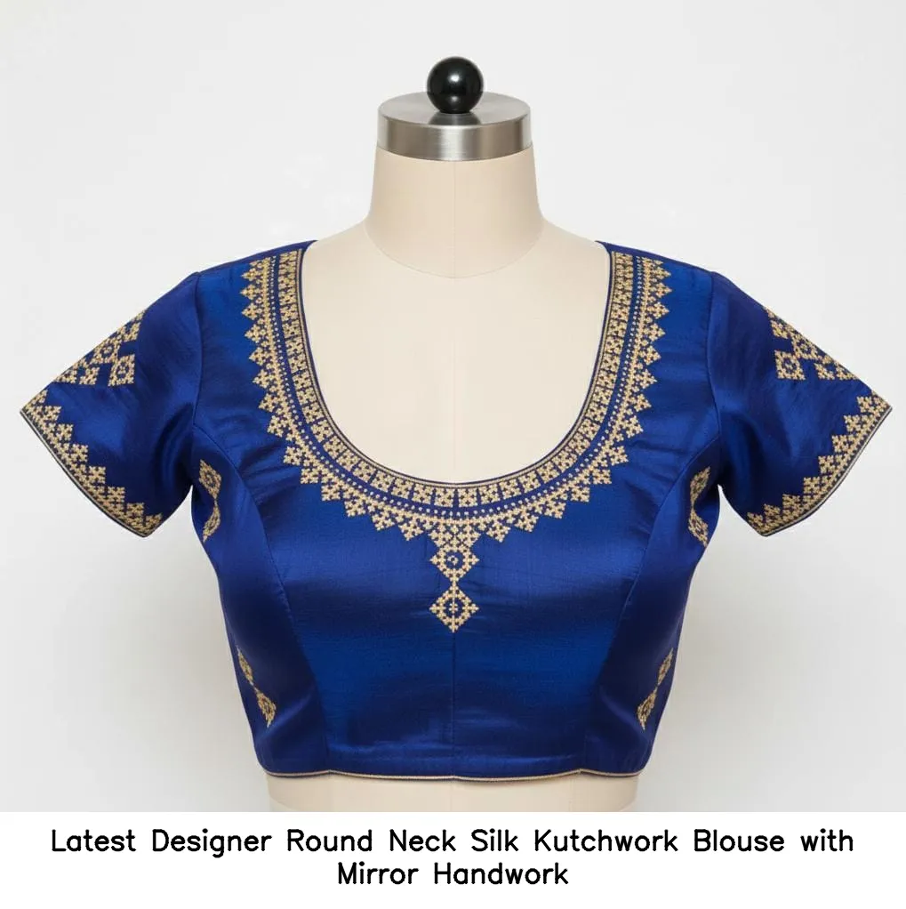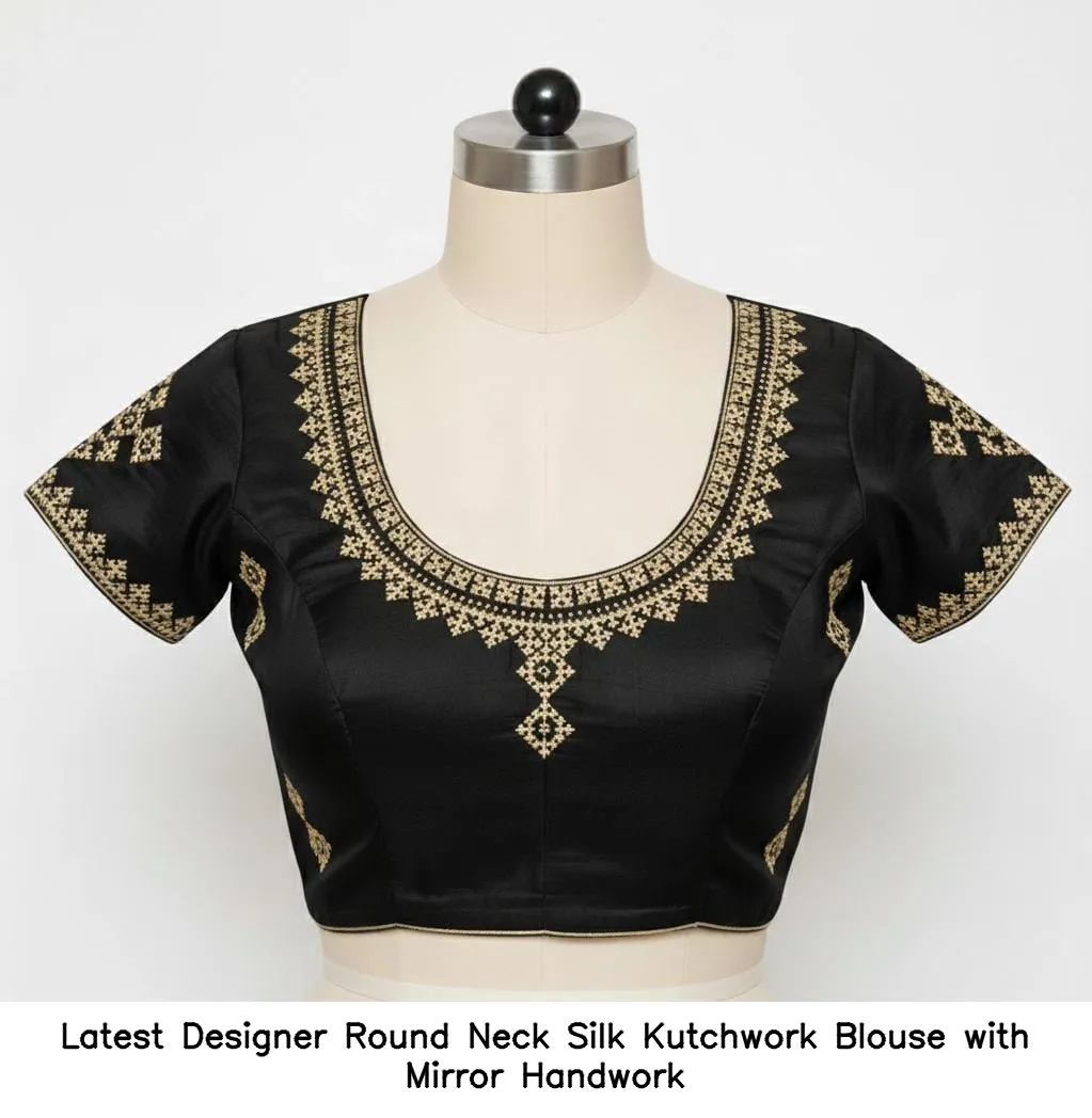 Why Choose Latest Designer Round Neck Silk Kutchwork Blouse with Mirror Handwork?