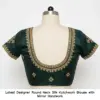 Latest Designer Round Neck Silk Kutchwork Blouse with Mirror Handwork offers elegance and style. This blouse enhances your traditional look effortlessly. Moreover, it is designed with intricate kutchwork and stunning mirror handwork. You can wear it for various occasions, making it a versatile addition to your wardrobe.