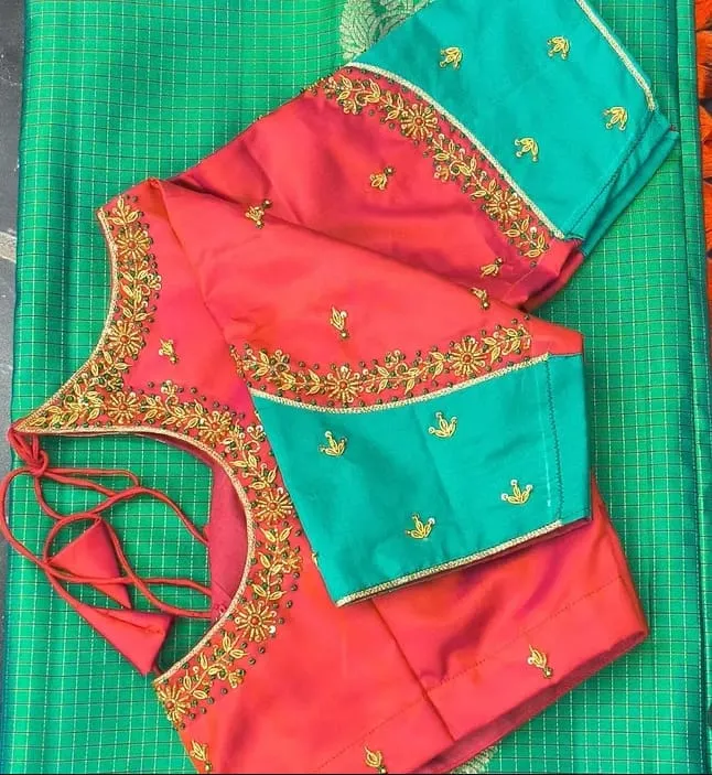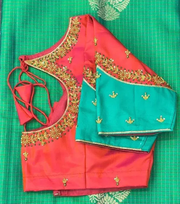 Latest Orange Blue Embroidered Saree Blouse Design offers a unique blend of elegance and style. This blouse enhances your traditional wear effortlessly. Moreover, it is designed to complement various sarees, making it a versatile choice for any occasion.