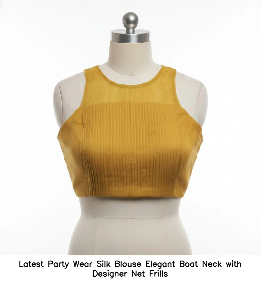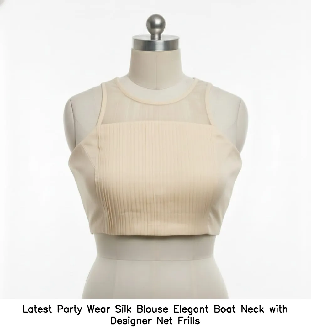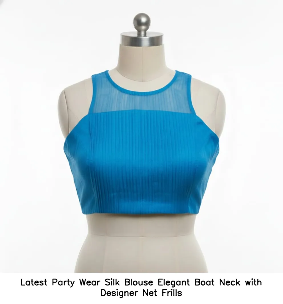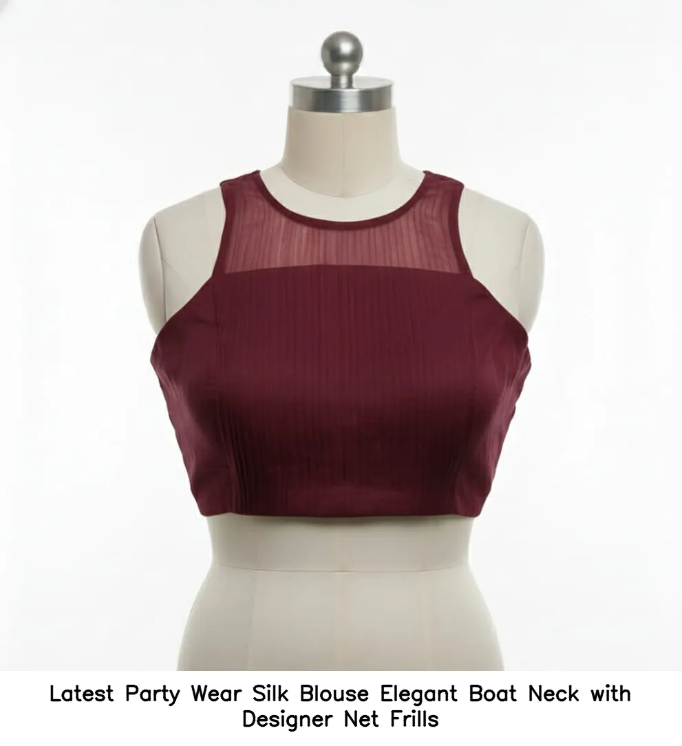 Latest Party Wear Silk Blouse – Elegant Boat Neck with Designer Net Frills