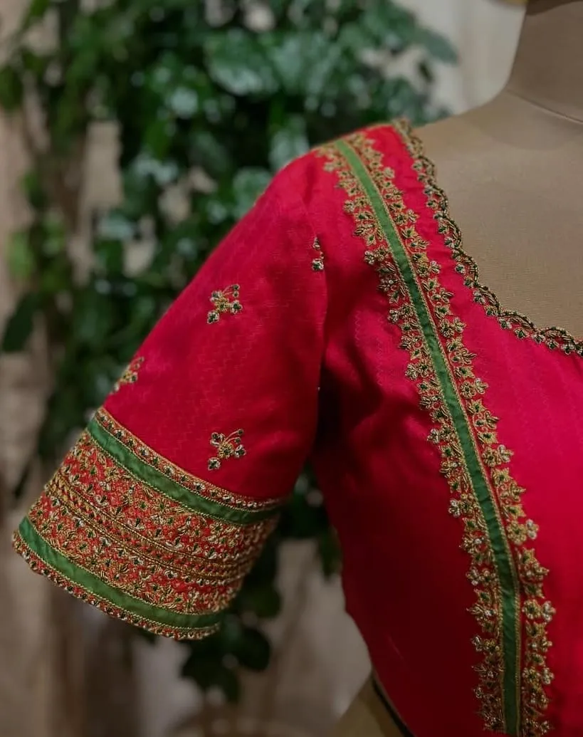 Why Choose Latest Red Designer Maggam Work Blouse Grand Bridal Hand Embroidery Buy Online?