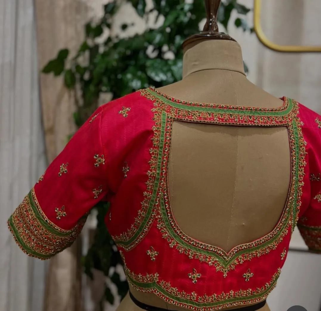 Latest Red Designer Maggam Work Blouse Grand Bridal Hand Embroidery Buy Online is perfect for any occasion. Follow us for updates and new arrivals; follow us on Facebook to stay connected!