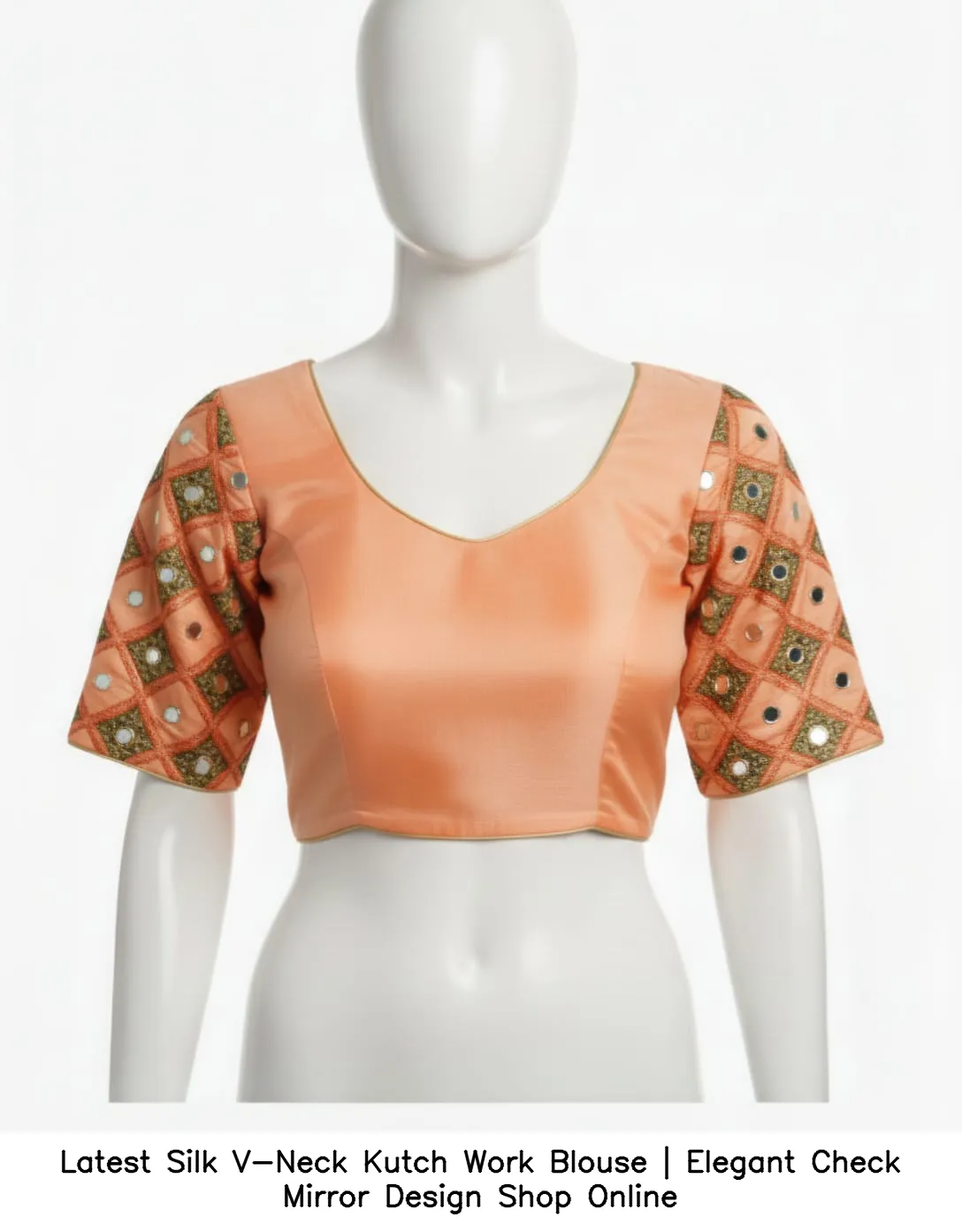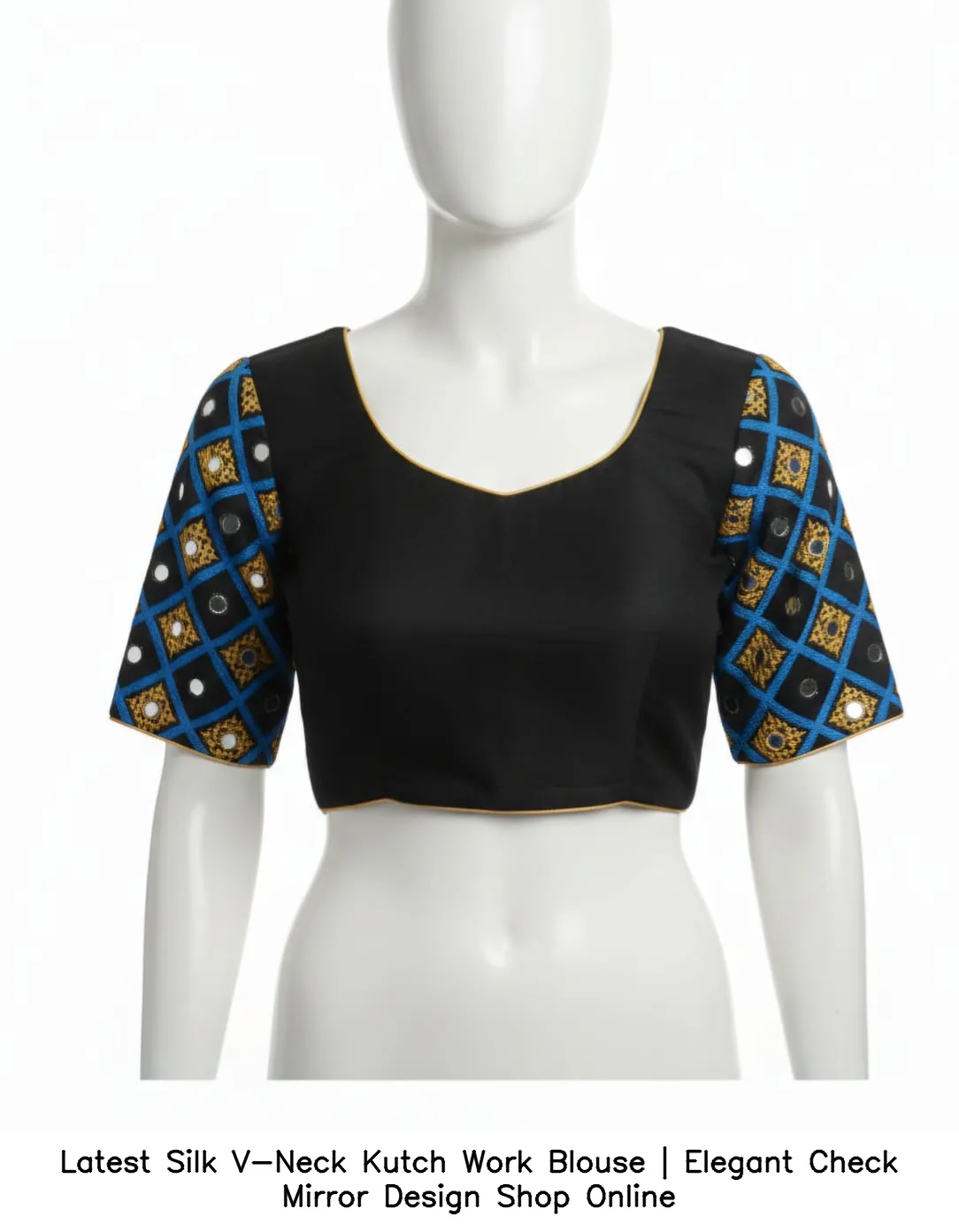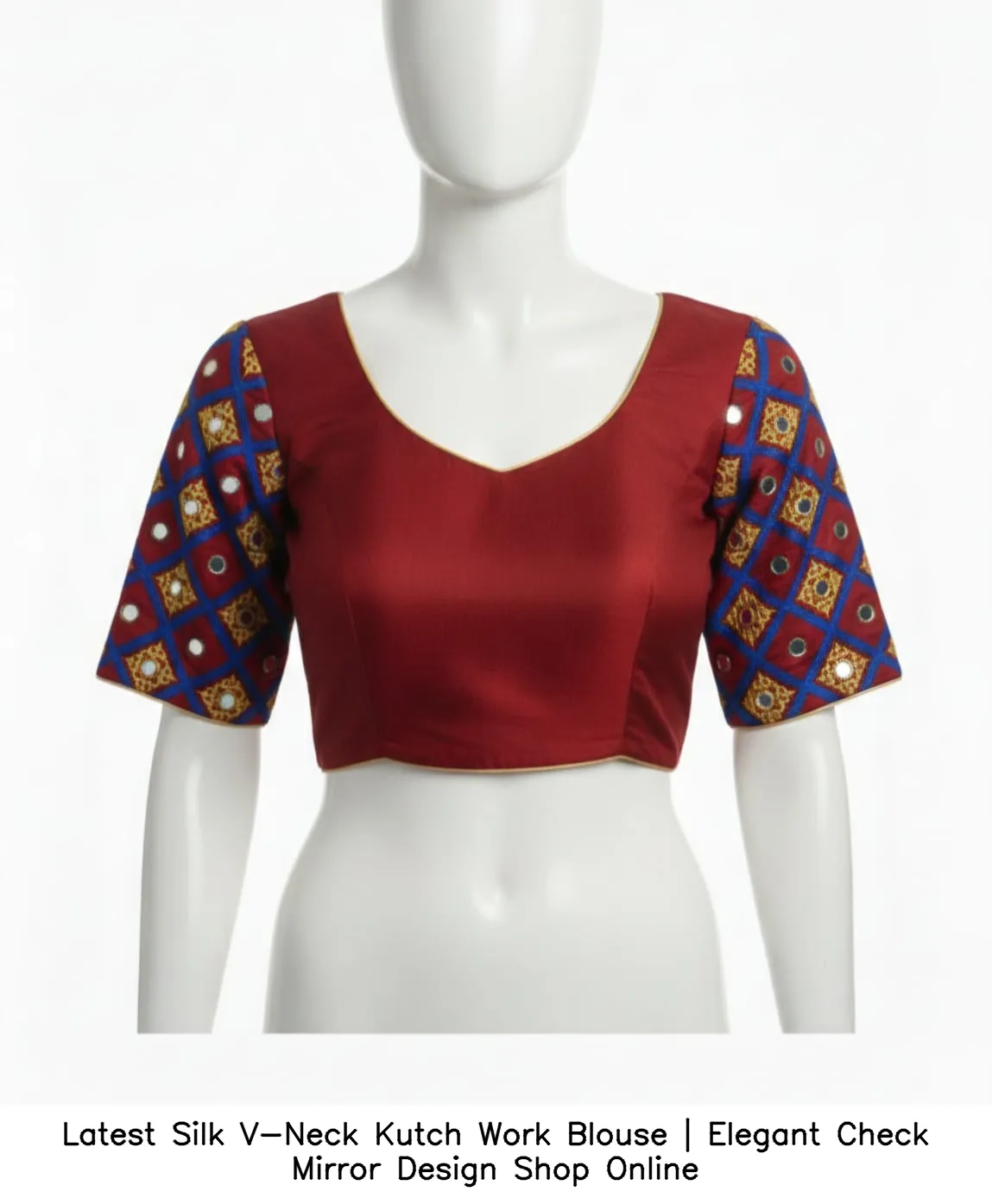Why Choose Latest Silk V-Neck Kutch Work Blouse | Elegant Check Mirror Design – Shop Online?
